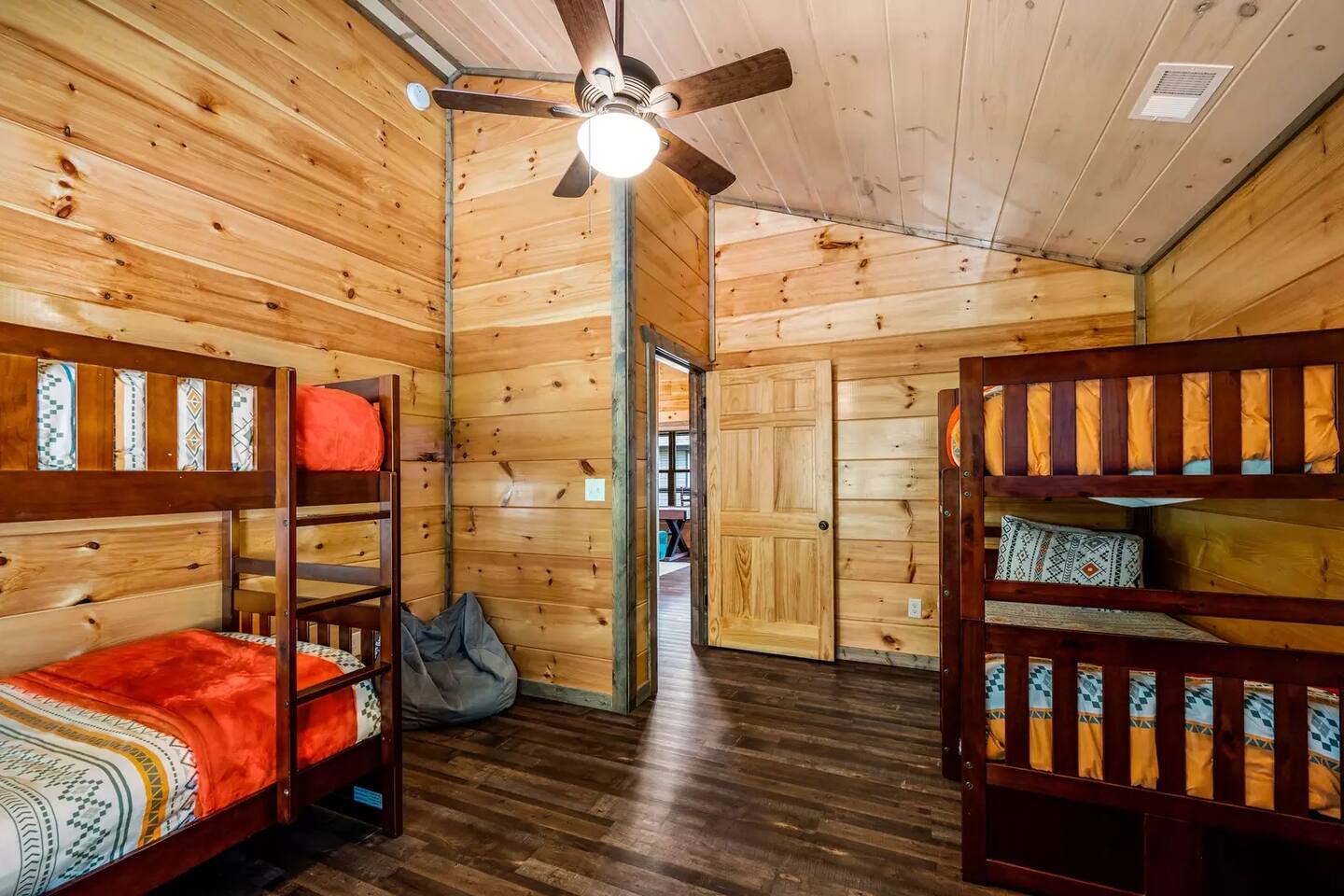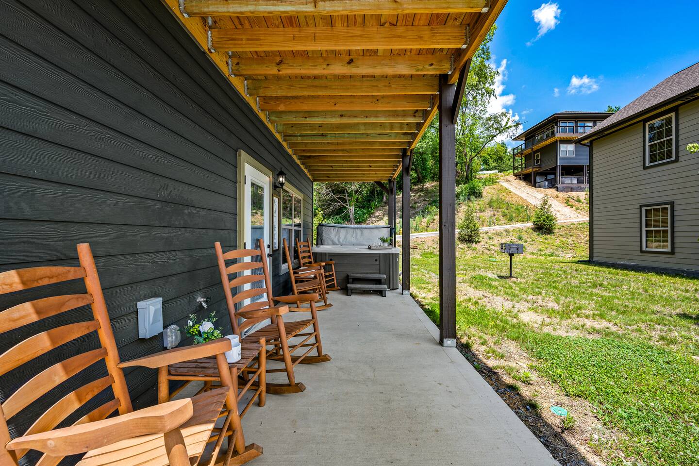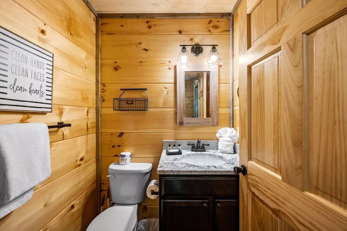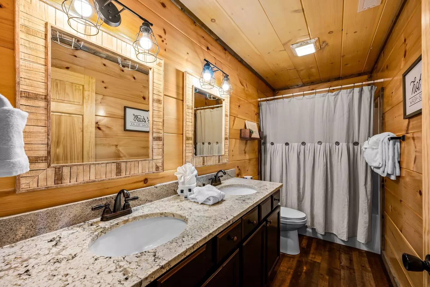 ✨ Cabin Highlights ✨ 🚗 Easy arrival: Paved, level roads, step-free entry, flat parking for up to 4 cars. ♨️ Covered hot tub with direct access from the king suite 🌄 Gentle distant mountain views from 3 covered decks. 🔥 Cozy great room with electric fireplace & big-screen TV. 🍳 Fully stocked stainless kitchen + bench/chair dining. 🐾 Dog-Friendly (max 2 pups) 🛌 Sleep & refresh (3BR • 2.5BA • sleeps 9) ✦Main level King with ensuite bathroom — Enjoy a comfy king-sized bed, Smart TV and private access out to the hot-tub. ✦Main level half bath– for added convenience. ✦Upstairs Queen bedroom —Comfy plush mattress w/ Smart TV ✦Upstairs Bunk room— Spacious room with vaulted ceilings featuring two twin bunk beds + Smart TV ✦Loft futon for an extra guest. ✦Upstairs Bathroom— Full bathroom with large double vanity 🎮 Play & gather Game loft: Golden Tee arcade, air hockey, seating area & TV. Smart TVs in every bedroom (log into your apps). Washer/Dryer on the main level. 🌤️ Outdoors Three covered decks for all-weather lounging with rocking chairs Park-style grill off the patio. (Charcoal Needed) 📍 Close to everything Dollywood 4.2 mi The Island at Pigeon Forge 5.9 mi Soaky Mountain & Wilderness Resort ~4.1 mi Ober Gatlinburg 16.7 mi