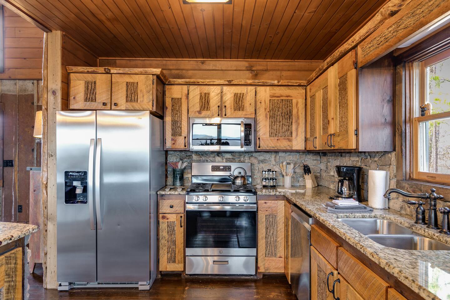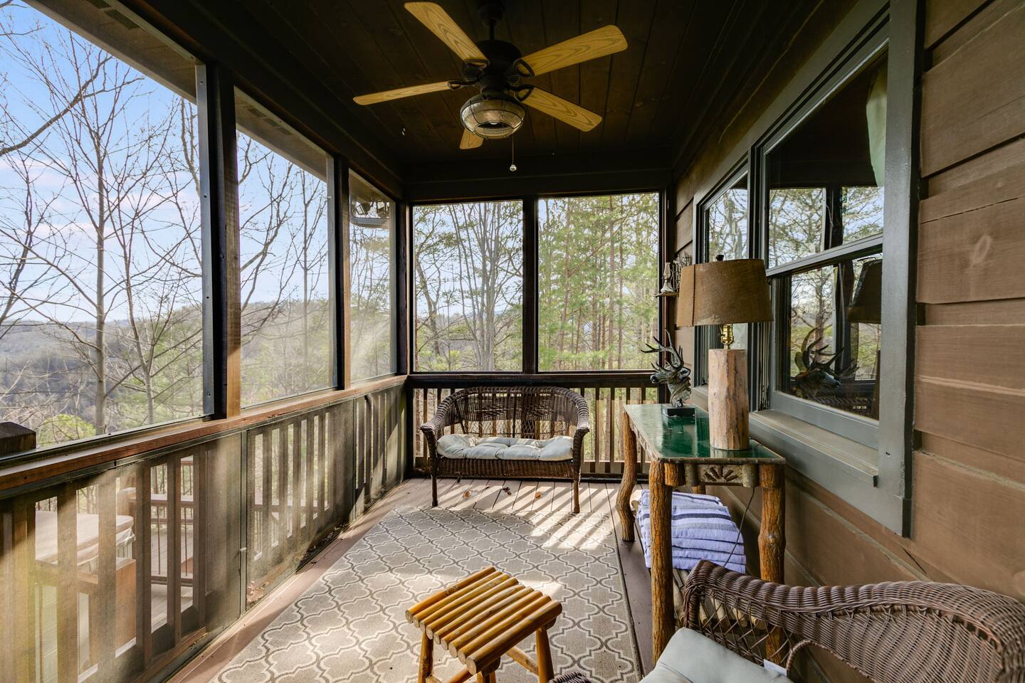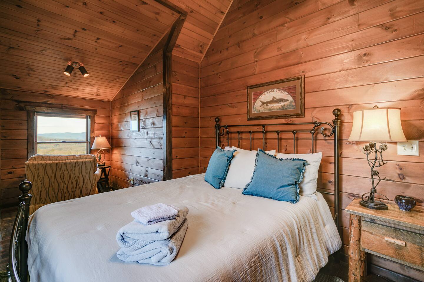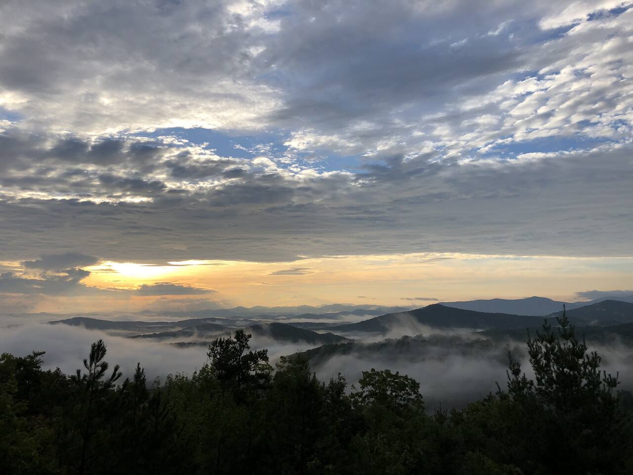 Welcome to ”Cohutta Sunrise” Cabin featuring: ❊Stunning year-round Mountain Views, overlooking the Chattahoochee National Forest. ❊Spacious Accommodations: 5 bedrooms, 4.5 baths, and over 3,600 square feet of living space. ❊Gourmet Kitchen: Fully stocked and equipped with granite countertops, a rustic stone backsplash, and a bar seating area. ❊Private Hot-Tub surrounded by panoramic mountain views. ❊Stone stacked outdoor fireplace with covered seating area ❊2 Expansive outdoor deck areas, screened-in porch with a fan and porch swing, as well as a gas grill for BBQs. ❊2 indoor fireplaces. ❊Luxury Bedding: A king suite with an ensuite bathroom on the main level and multiple comfortable sleeping arrangements throughout. ❊Prime Location: Only 15 minutes from downtown Blue Ridge, combining seclusion with accessibility. ❊Game Room with pool table, giant leather sectional, big screen TV, and games!