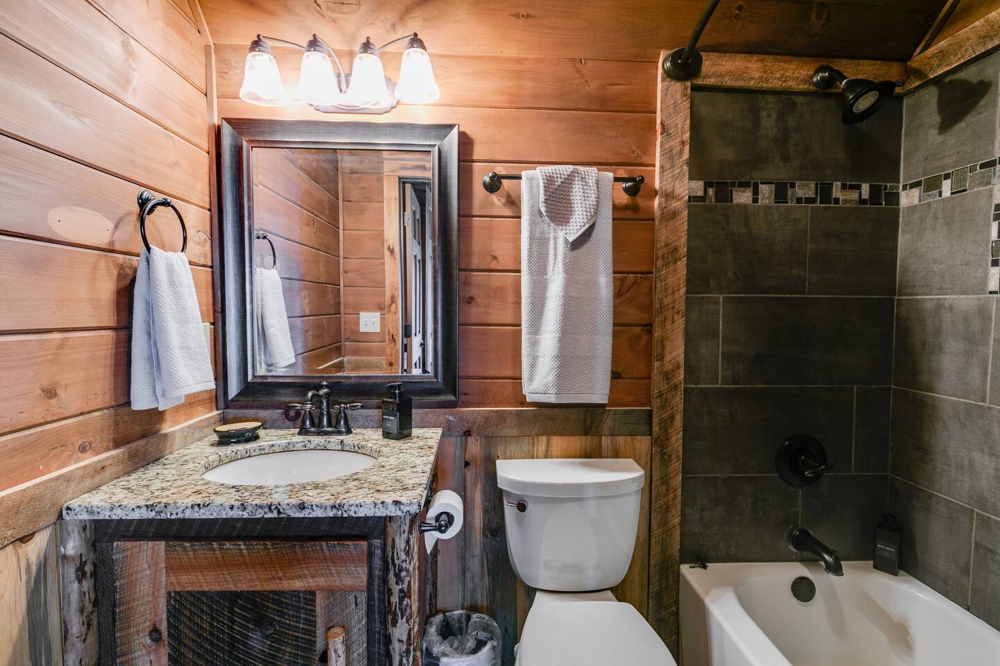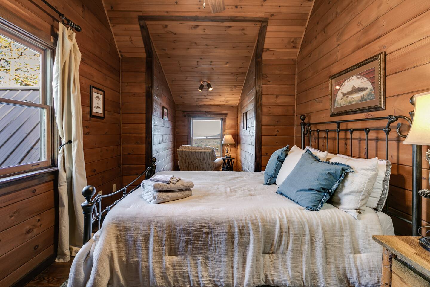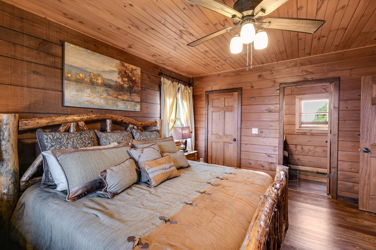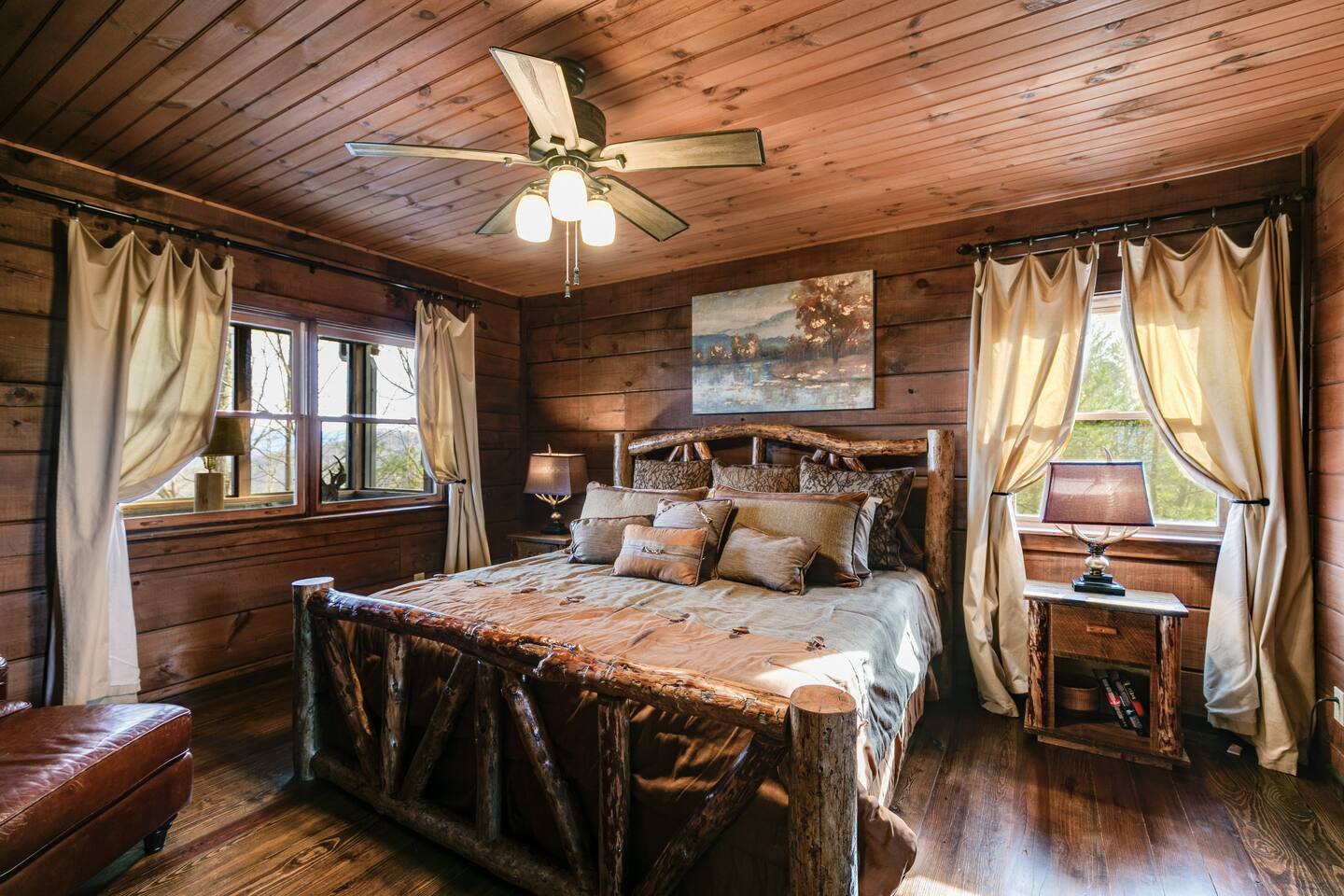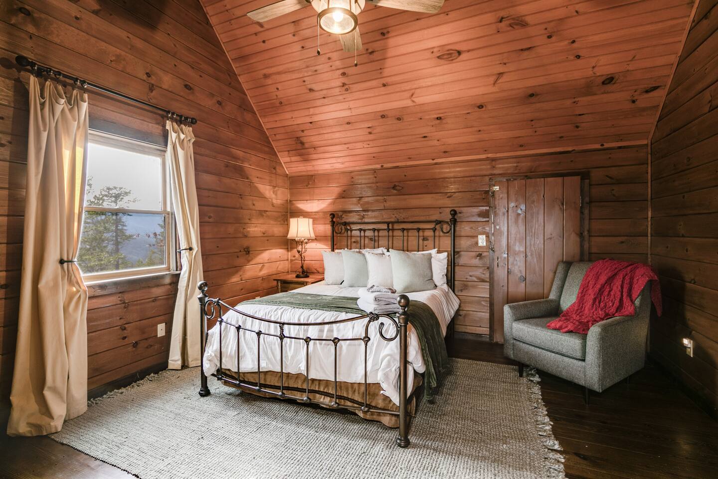 Welcome to ”Cohutta Sunrise” Cabin featuring: ❊Stunning year-round Mountain Views, overlooking the Chattahoochee National Forest. ❊Spacious Accommodations: 5 bedrooms, 4.5 baths, and over 3,600 square feet of living space. ❊Gourmet Kitchen: Fully stocked and equipped with granite countertops, a rustic stone backsplash, and a bar seating area. ❊Private Hot-Tub surrounded by panoramic mountain views. ❊Stone stacked outdoor fireplace with covered seating area ❊2 Expansive outdoor deck areas, screened-in porch with a fan and porch swing, as well as a gas grill for BBQs. ❊2 indoor fireplaces. ❊Luxury Bedding: A king suite with an ensuite bathroom on the main level and multiple comfortable sleeping arrangements throughout. ❊Prime Location: Only 15 minutes from downtown Blue Ridge, combining seclusion with accessibility. ❊Game Room with pool table, giant leather sectional, big screen TV, and games!