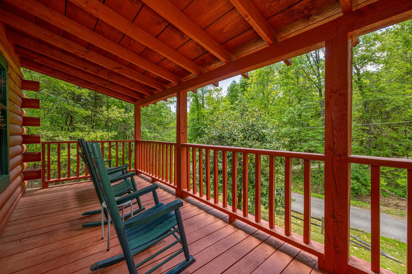 • Private backyard w/ hot tub, propane grill, and a string lit fire-pit • Master bedroom with large king-sized bed • Wood-burning fireplace with big screen Roku TV • Large front porch with swing and rocking chairs • Loft with pool table, dart board, and board games • Paved driveway with parking for two vehicles • Comfortable queen-size sleeper sofa • Fully equipped kitchen with cooking utensils and small appliances • Freshly cleaned towels and starter toiletries in bathroom
