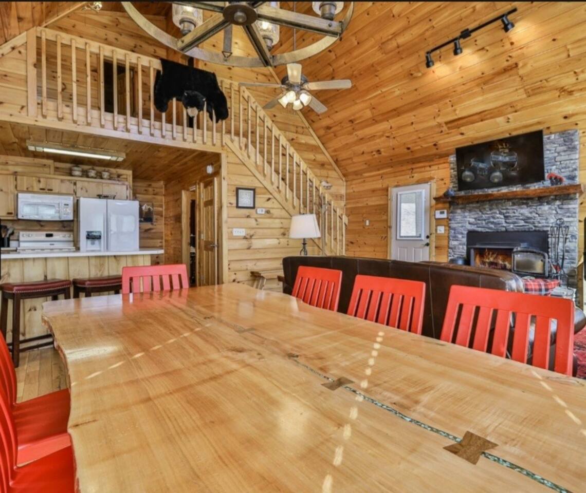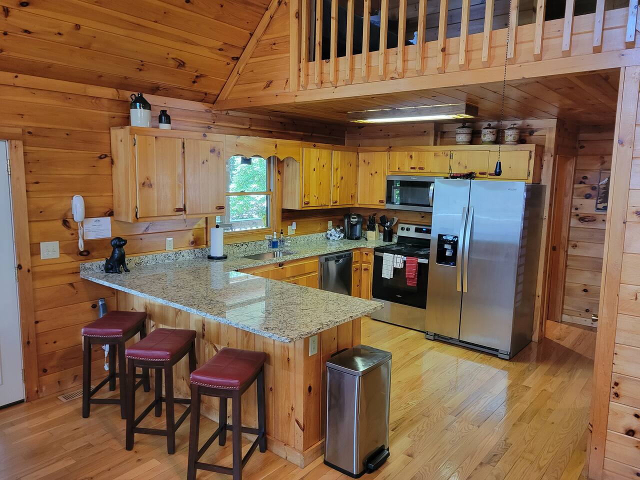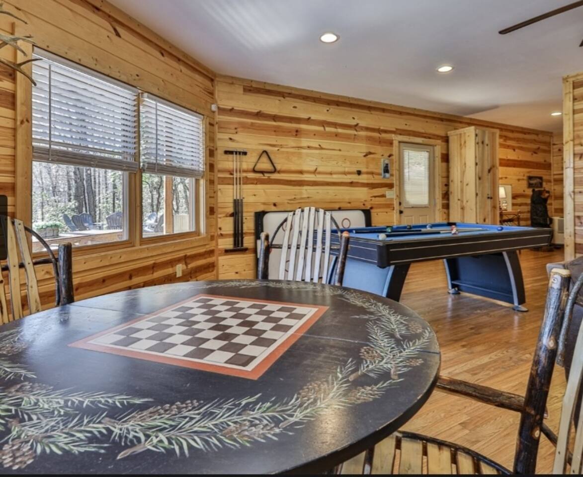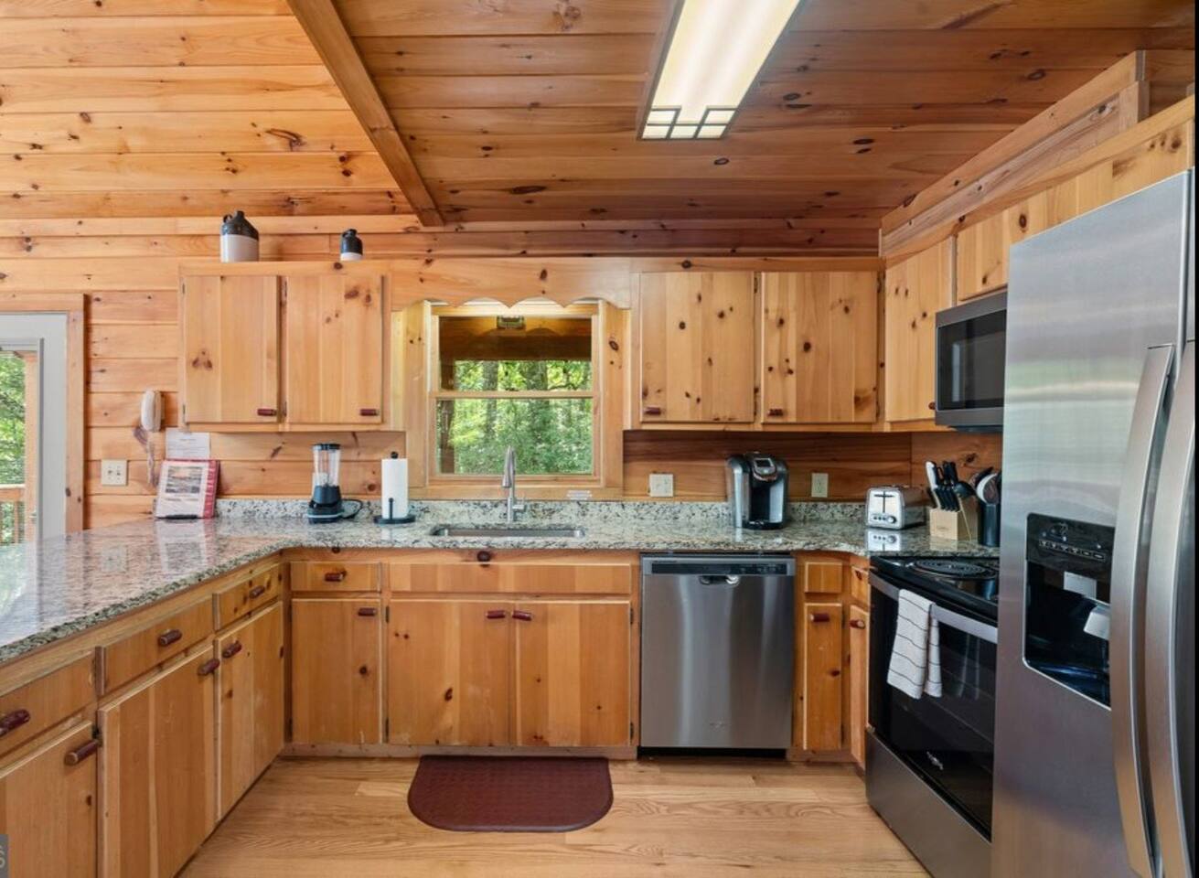 ★ Conveniently Located Between Blue Ridge and Ellijay ★ Outdoor Area & Amenities – Explore and Relax ✓ Wrap-around Porch with Ample Seating ✓ Hot Tub shielded from weather (under deck area) ✓ Outdoor dining area ✓ Propane Grill ✓ Picnic table ✓ Firepit with Adirondack chairs (bring your own firewood) ✓ Onsite parking for 4 vehicles Basement – Relax and Enjoy ✓ 55” TV with Roku box ✓ Pool Table ✓ Chess & Checkers Table ✓ Lots of board games!! ✓ DVD Player with DVDs ✓ Comfy Sofa with Pillows & Blanket Sleeping Arrangements – 3 Bedrooms Upper Level - Bedroom ✓ King-sized Bed ✓ Roku Smart TV ✓ Large ensuite Bathroom with Double Vanity ✓ Private reading room with windows ✓ Day Bed in sitting area ✓ Separate thermostat / heating & cooling zone Main Level - Bedroom ✓ Queen-size Bed ✓ Roku Smart TV ✓ Large bathroom is accessed from the hallway ✓ Washer and Dryer located in bathroom (2-3 detergent pods included) Lower Level - Bedroom ✓ Two bunk beds (sleeps 4 people) ✓ 55" TV with Roku box & DVD player (DVDs at cabin!) ✓ Pool table ✓ Chess/Checkers table & tons of board games ✓ Large Bathroom Kitchen – Cook that Special Meal & Enjoy Your Favorite Drinks ✓ Fully Equipped Kitchen with New Stainless Steel appliances and granite countertops ✓ Keurig coffee maker Living Room - Perfect place to Share Stories and Laughs ✓ Comfy leather recliner with pillows ✓ Comfy leather sofa with blankets ✓ 55” Roku Smart TV ✓ Wood burning stove / stone fireplace (directions provided for use) ✓ Access to the Outdoor Deck ★ Ready to relax and enjoy this beautiful cabin? Book today! ★