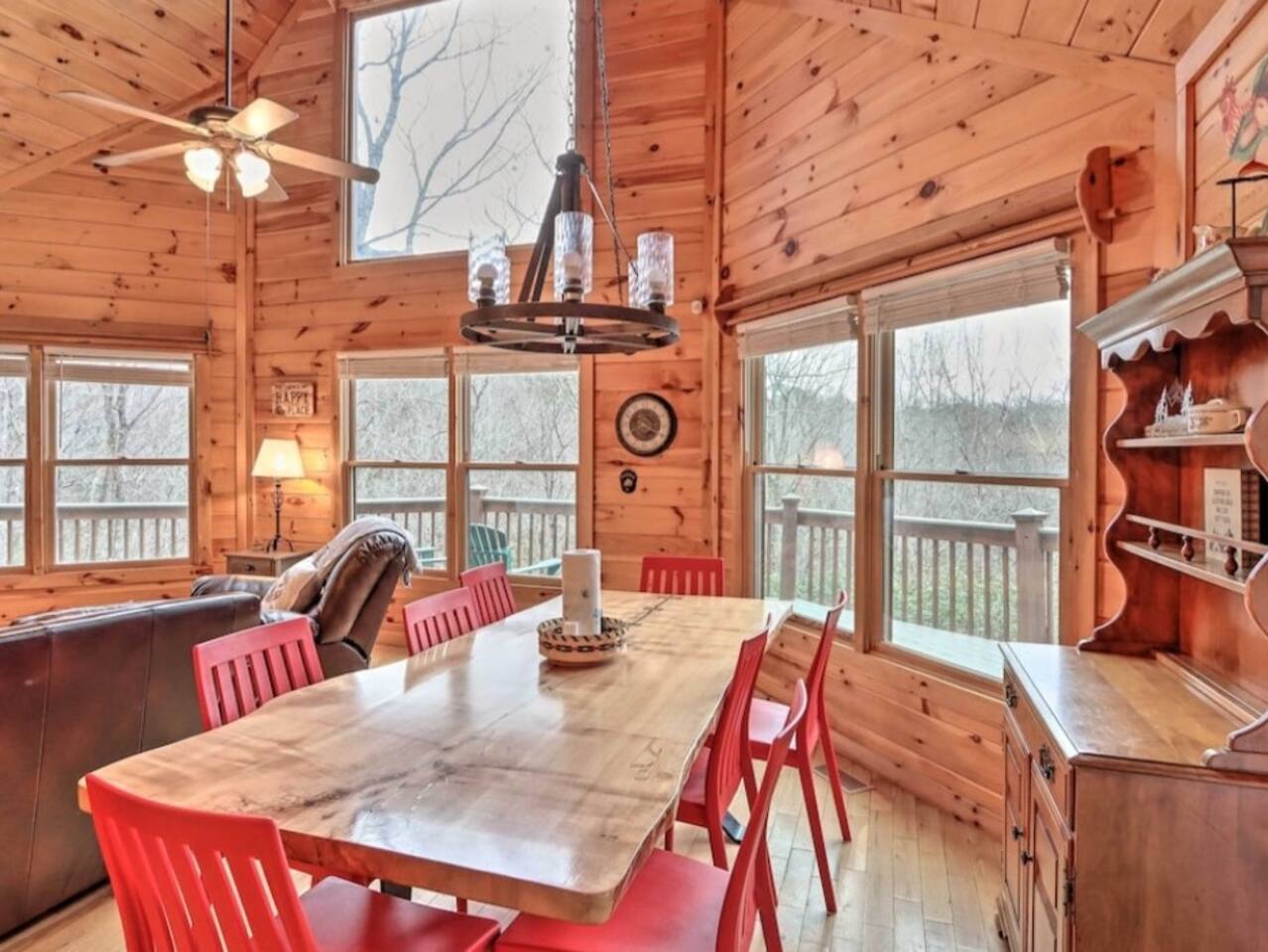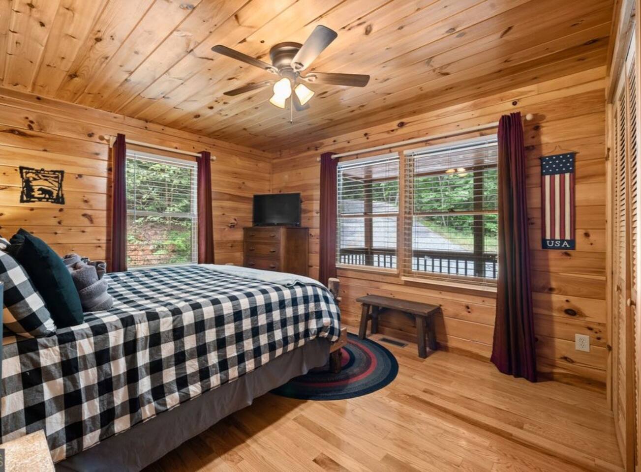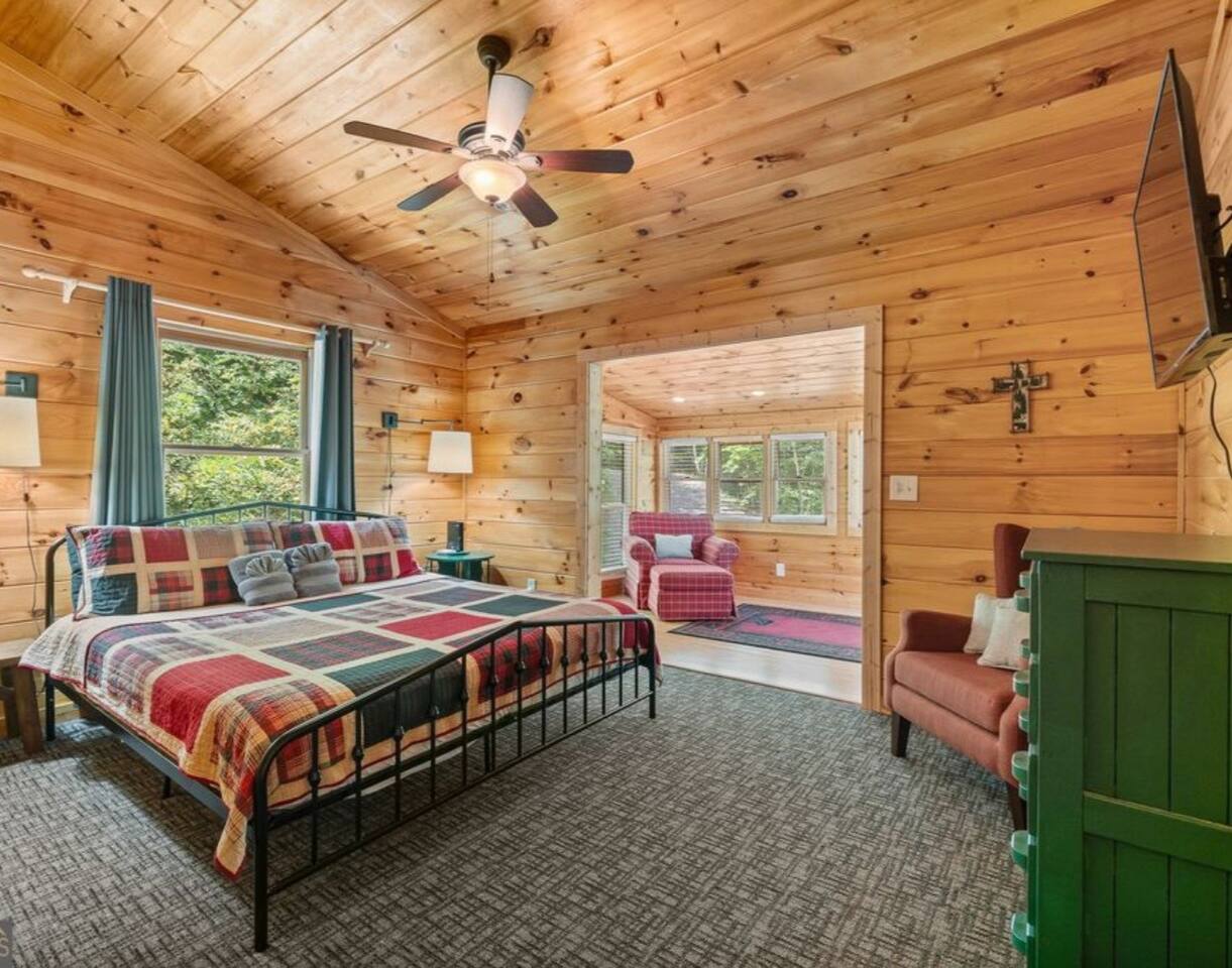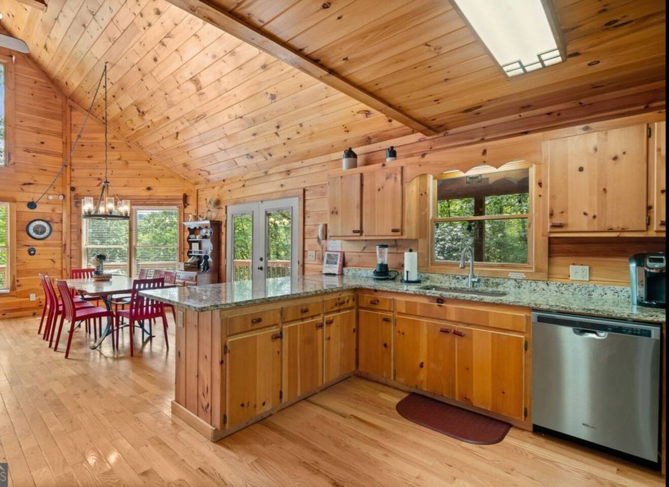 ★ Conveniently Located Between Blue Ridge and Ellijay ★ Outdoor Area & Amenities – Explore and Relax ✓ Wrap-around Porch with Ample Seating ✓ Hot Tub shielded from weather (under deck area) ✓ Outdoor dining area ✓ Propane Grill ✓ Picnic table ✓ Firepit with Adirondack chairs (bring your own firewood) ✓ Onsite parking for 4 vehicles Basement – Relax and Enjoy ✓ 55” TV with Roku box ✓ Pool Table ✓ Chess & Checkers Table ✓ Lots of board games!! ✓ DVD Player with DVDs ✓ Comfy Sofa with Pillows & Blanket Sleeping Arrangements – 3 Bedrooms Upper Level - Bedroom ✓ King-sized Bed ✓ Roku Smart TV ✓ Large ensuite Bathroom with Double Vanity ✓ Private reading room with windows ✓ Day Bed in sitting area ✓ Separate thermostat / heating & cooling zone Main Level - Bedroom ✓ Queen-size Bed ✓ Roku Smart TV ✓ Large bathroom is accessed from the hallway ✓ Washer and Dryer located in bathroom (2-3 detergent pods included) Lower Level - Bedroom ✓ Two bunk beds (sleeps 4 people) ✓ 55" TV with Roku box & DVD player (DVDs at cabin!) ✓ Pool table ✓ Chess/Checkers table & tons of board games ✓ Large Bathroom Kitchen – Cook that Special Meal & Enjoy Your Favorite Drinks ✓ Fully Equipped Kitchen with New Stainless Steel appliances and granite countertops ✓ Keurig coffee maker Living Room - Perfect place to Share Stories and Laughs ✓ Comfy leather recliner with pillows ✓ Comfy leather sofa with blankets ✓ 55” Roku Smart TV ✓ Wood burning stove / stone fireplace (directions provided for use) ✓ Access to the Outdoor Deck ★ Ready to relax and enjoy this beautiful cabin? Book today! ★
