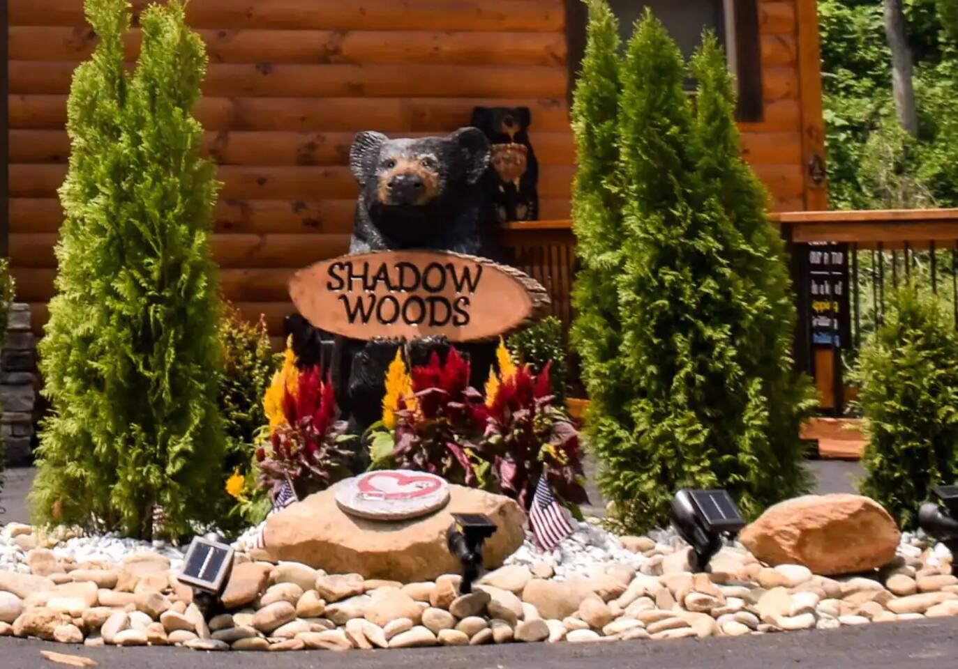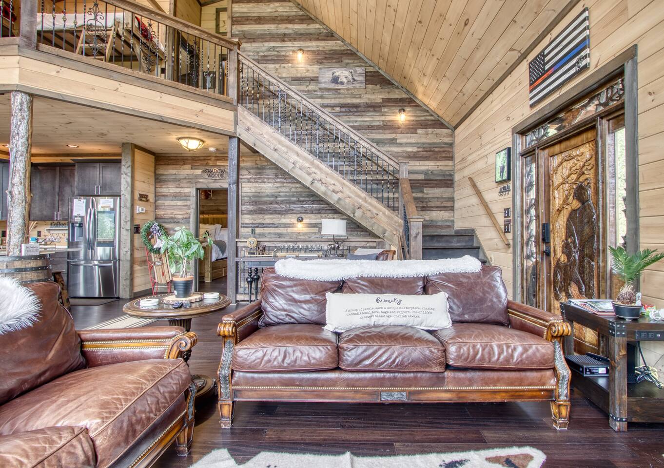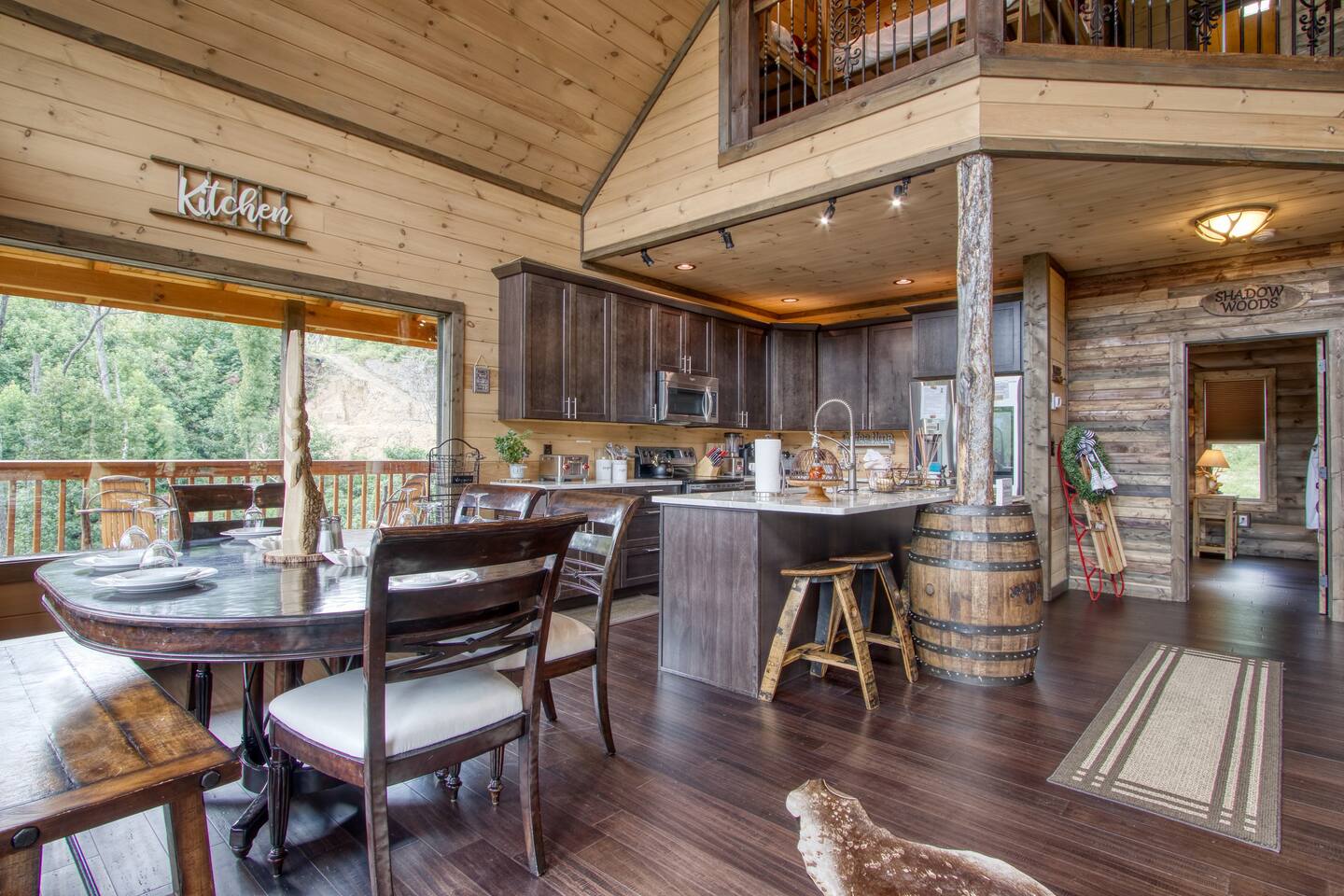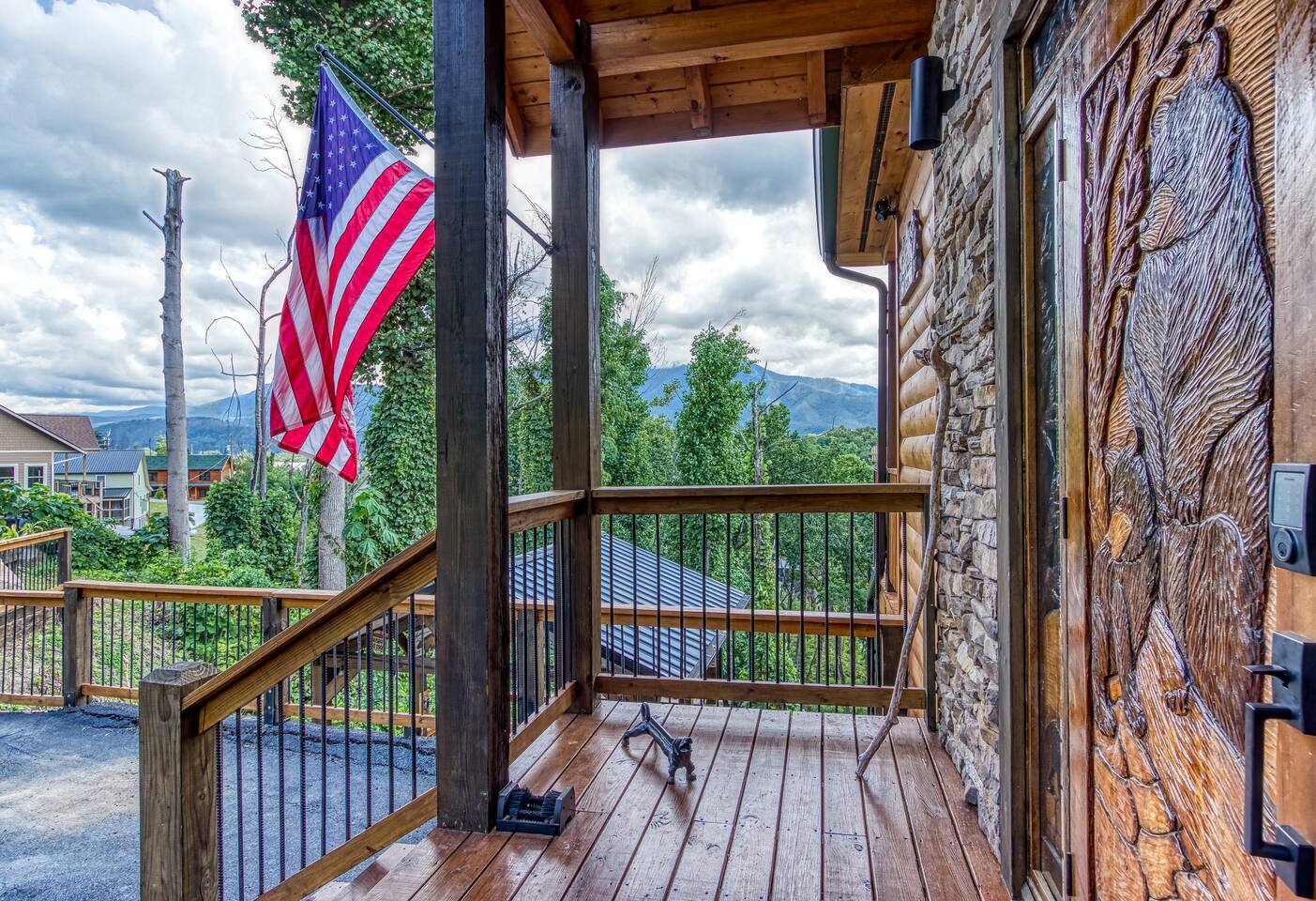 🌟Key Features 🏔️ Unmatched panoramic mountain views 🎬 Private theater room with tiered seating for movie nights 🕹️ Epic game room with foosball table, arcade games & pool table 🍷 Luxury “Man Cave” with wet bar 🛁 Covered outdoor hot tub with scenic mountain backdrop 🛌 Spa-like king suite with jacuzzi tub, walk-in shower & deck access 🪵 Massive wraparound decks with log rocking chairs & swing 🔥 Stone-stacked gas fireplace in a soaring great room 🍽️ Fully loaded chef’s kitchen with stainless steel appliances & views 📶 High-speed Wi-Fi + cable & satellite TV for work or entertainment 🧺 In-cabin laundry and 3 full bathrooms 🏊 Community pool & clubhouse access in Chalet Village 🎿 Close to ski areas, tennis courts, and Gatlinburg attractions This stunning cabin is situated just 3 miles from Downtown Gatlinburg and 7 miles from Pigeon Forge, Shadow Woods is centrally located and close to everything. The Cabin is Minutes away from the Ski Resort Ober Gatlinburg, and whatever adventures you wish to undertake. Minutes From Hiking Trails, Underground Caverns, Zip-lines, Water-rafting, Dollywood, & a multitude of activities at your disposal. Our 2,700 square foot luxury cabin comfortably accommodates up to 10 guests. This luxury cabin offers 2 King beds, 1 Queen bed, and 2 twin bunk beds (sleeps 4). Additionally, each room has its own flat screen TV. As you enter the cabin, you will be captivated by stunning windows offering you a million dollar view, Bringing the Smokies mountains into the Cabin with you. Ready for some fun and games? The downstairs game room and den also has a , a wet bar, a game table which offers both a pool table, air hockey table, & a movie Theatre . The lower deck also features a Gazebo with a hot tub, so you can enjoy views of Mountain, all while soaking in the hot tub! For our guests who must stay connected we offer a free 100 mbps wireless internet connection and cable TV through Charter Spectrum. Two minutes down the road, during the season our guests have access to the Association Clubhouse that features a huge swimming pool, as well as tennis courts. During the winter, our location on Ski Mountain makes access to the ski slopes of Ober Gatlinburg an easy 7 minute drive. Downtown Gatlinburg is a short 4-mile drive and offers shopping, fabulous restaurants, and tourist attractions that will keep everyone entertained.