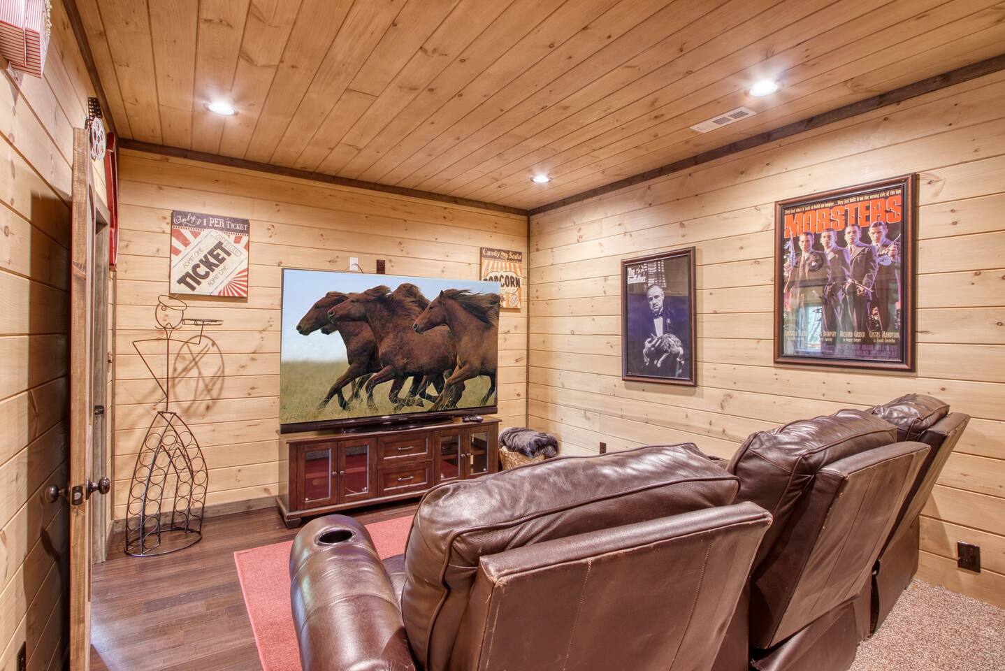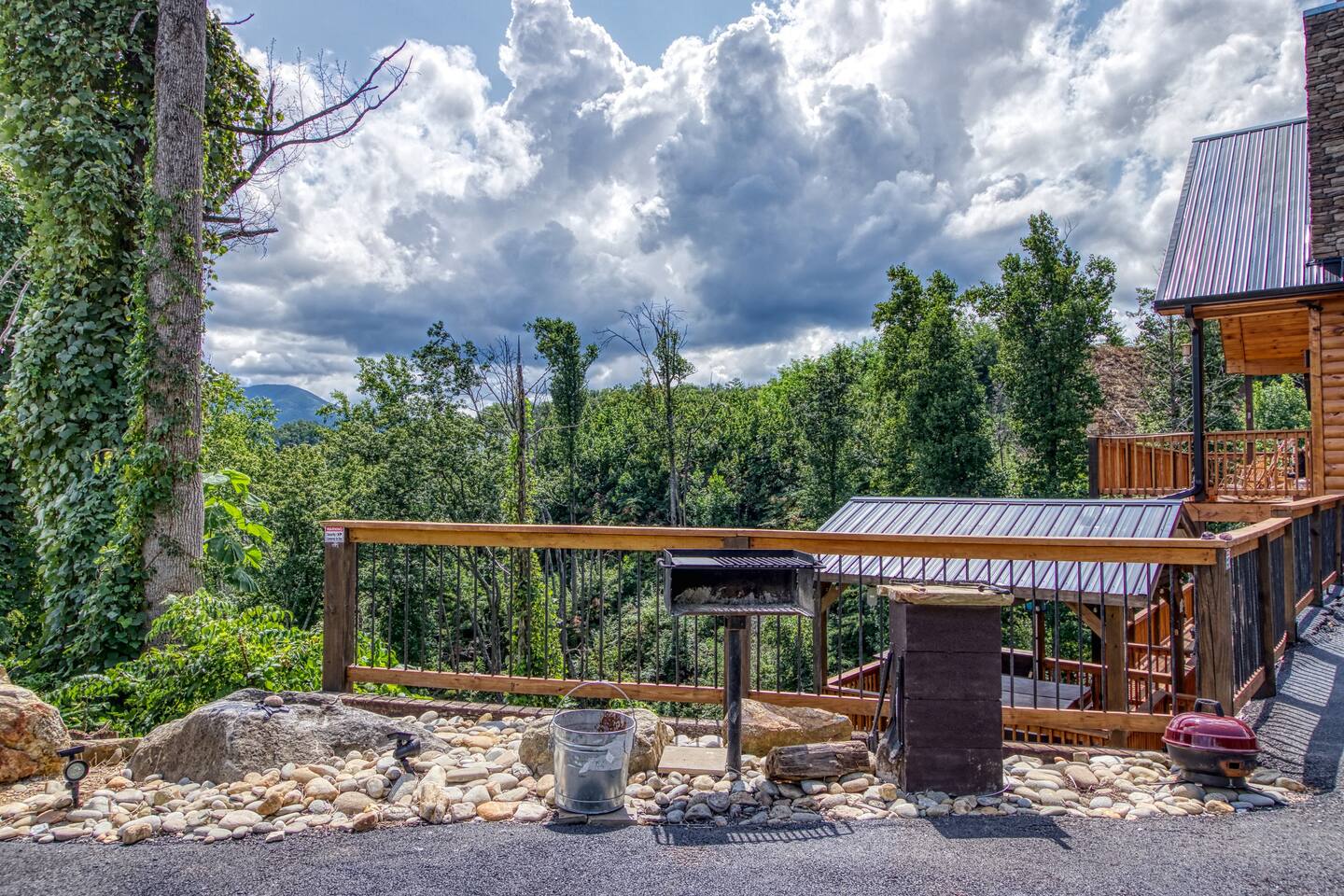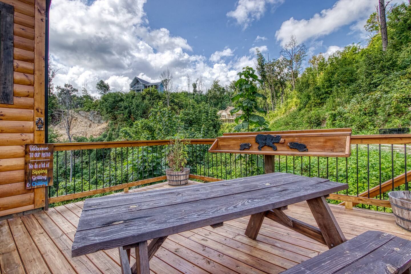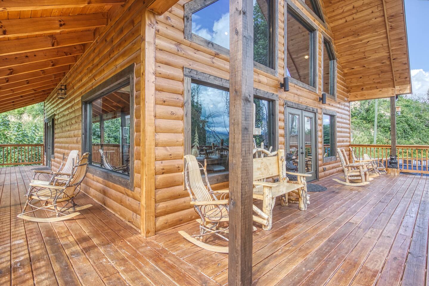 🌟Key Features 🏔️ Unmatched panoramic mountain views 🎬 Private theater room with tiered seating for movie nights 🕹️ Epic game room with foosball table, arcade games & pool table 🍷 Luxury “Man Cave” with wet bar 🛁 Covered outdoor hot tub with scenic mountain backdrop 🛌 Spa-like king suite with jacuzzi tub, walk-in shower & deck access 🪵 Massive wraparound decks with log rocking chairs & swing 🔥 Stone-stacked gas fireplace in a soaring great room 🍽️ Fully loaded chef’s kitchen with stainless steel appliances & views 📶 High-speed Wi-Fi + cable & satellite TV for work or entertainment 🧺 In-cabin laundry and 3 full bathrooms 🏊 Community pool & clubhouse access in Chalet Village 🎿 Close to ski areas, tennis courts, and Gatlinburg attractions This stunning cabin is situated just 3 miles from Downtown Gatlinburg and 7 miles from Pigeon Forge, Shadow Woods is centrally located and close to everything. The Cabin is Minutes away from the Ski Resort Ober Gatlinburg, and whatever adventures you wish to undertake. Minutes From Hiking Trails, Underground Caverns, Zip-lines, Water-rafting, Dollywood, & a multitude of activities at your disposal. Our 2,700 square foot luxury cabin comfortably accommodates up to 10 guests. This luxury cabin offers 2 King beds, 1 Queen bed, and 2 twin bunk beds (sleeps 4). Additionally, each room has its own flat screen TV. As you enter the cabin, you will be captivated by stunning windows offering you a million dollar view, Bringing the Smokies mountains into the Cabin with you. Ready for some fun and games? The downstairs game room and den also has a , a wet bar, a game table which offers both a pool table, air hockey table, & a movie Theatre . The lower deck also features a Gazebo with a hot tub, so you can enjoy views of Mountain, all while soaking in the hot tub! For our guests who must stay connected we offer a free 100 mbps wireless internet connection and cable TV through Charter Spectrum. Two minutes down the road, during the season our guests have access to the Association Clubhouse that features a huge swimming pool, as well as tennis courts. During the winter, our location on Ski Mountain makes access to the ski slopes of Ober Gatlinburg an easy 7 minute drive. Downtown Gatlinburg is a short 4-mile drive and offers shopping, fabulous restaurants, and tourist attractions that will keep everyone entertained.
