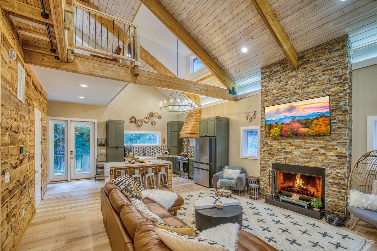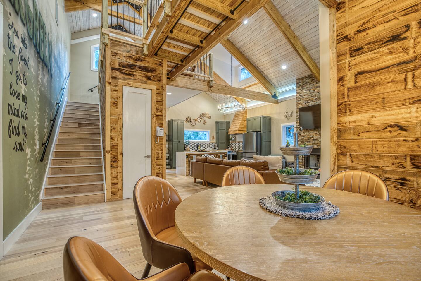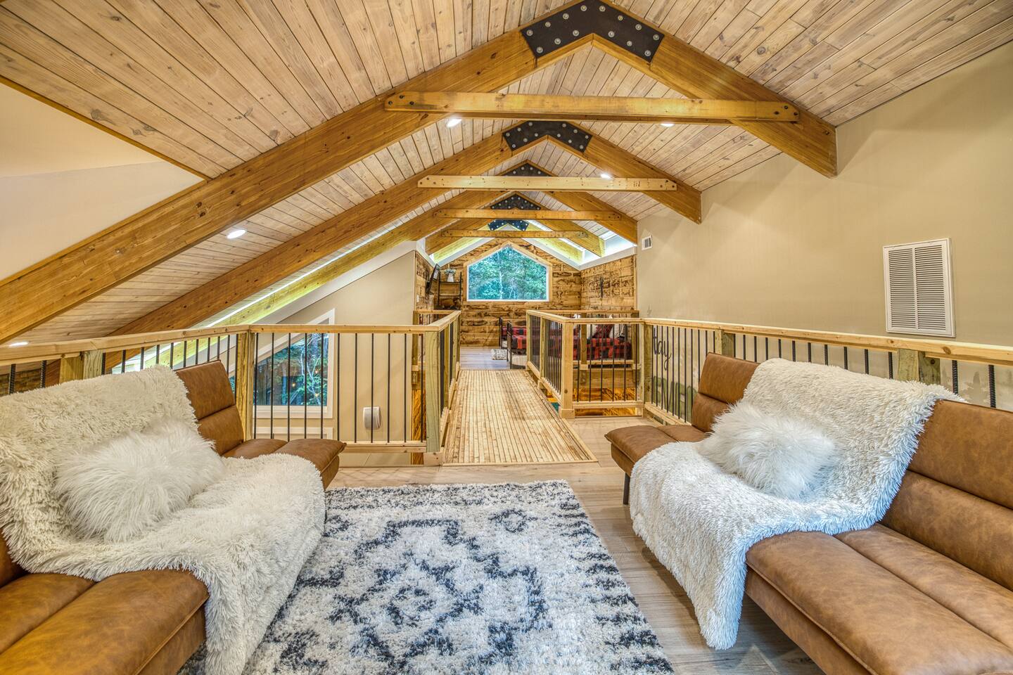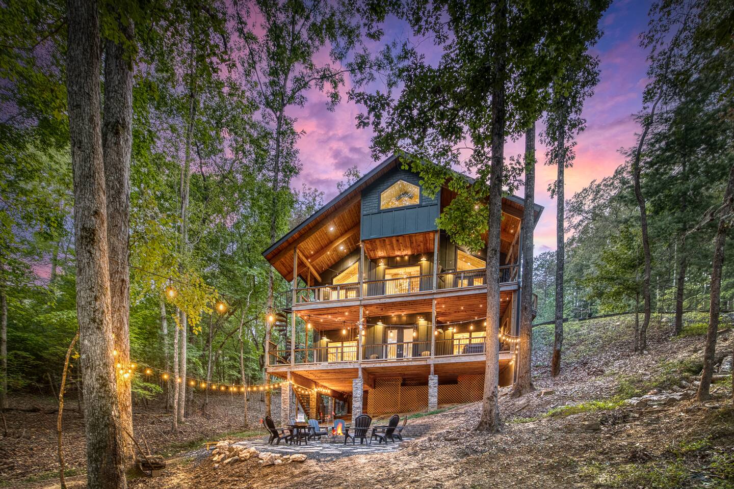 Setback on 3 acres, this stunning custom-built cabin offers the perfect blend of convenience and seclusion. Enjoy 3 king suites, a spa-style master bath, and an open living area with soaring ceilings and a crackling wood-burning fireplace. Relax on the deck, soak in the hot tub, or take on friends in the game room with darts and arcade classics. Perfectly situated between Blue Ridge and Blairsville, this cabin is the ultimate mountain getaway!