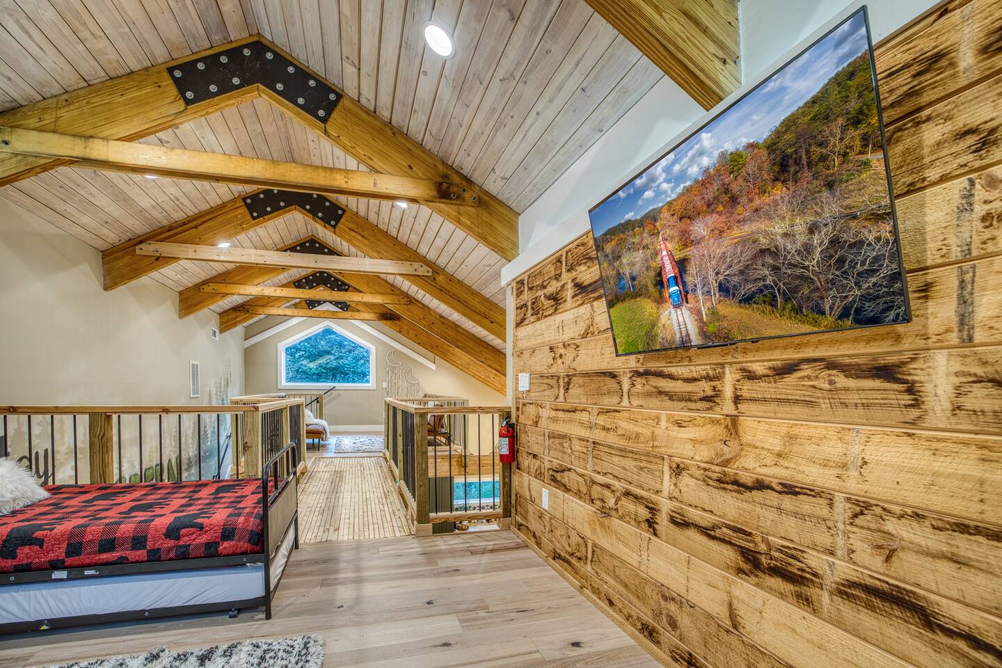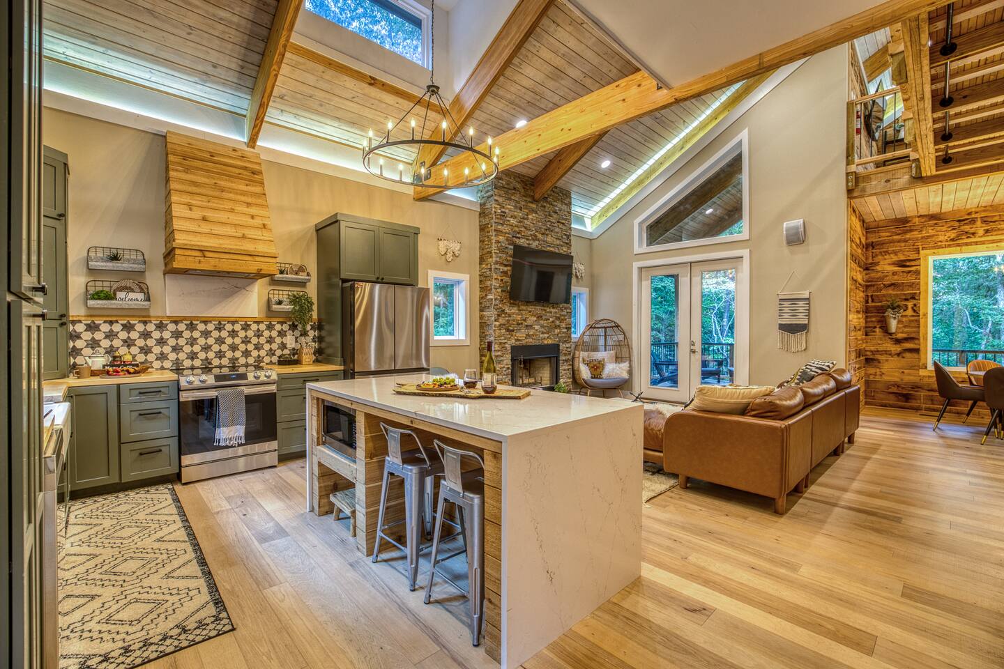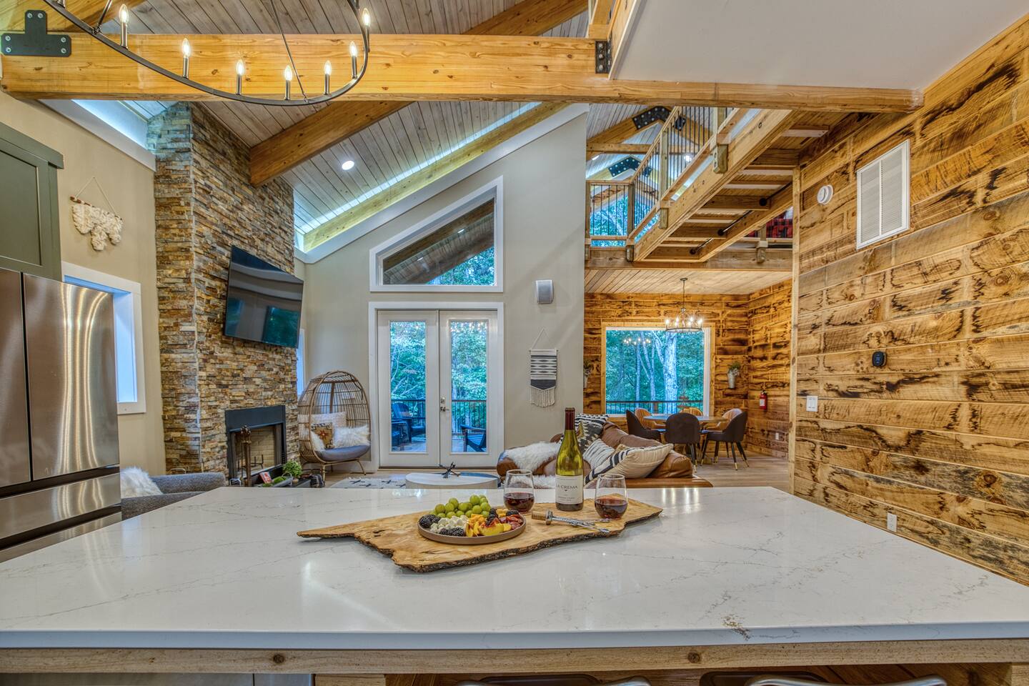 ✨ Cabin Highlights ✨ 🛏️ 3 King Suites + double Loft (sleeps 10 comfortably) 🔥 Wood-Burning Fireplace in open living room 🛁 Hot Tub w/ Roku TV for stargazing soaks 🎮 Arcade Games + Bubble Hockey for nonstop fun 🌲 3 Private Wooded Acres w/ new fire pit, Adirondack chairs & lawn games! 🍿 Popcorn Maker, Record Player & Board Games for family nights 🐾 Dog-Friendly (max 2 pups) 🍽️ Fully Stocked Kitchen + outdoor grill & dining area 🛋️ Spacious Double Decks + outdoor bed swing ✨Tucked away on 3 private wooded acres between Blue Ridge and Blairsville, this 3,000 sq ft custom luxury cabin blends modern comfort with a cozy treehouse vibe. Whether you’re planning a family getaway, a couples’ retreat, or a friends’ adventure, this spacious home is designed for relaxation, fun, and unforgettable mountain memories. 🛏️ Sleeping Arrangements (Sleeps 10 Max) Bedroom 1: King bed + Roku TV Bedroom 2: King bed + Roku TV Bedroom 3: King bed + Roku TV Bedroom 4 (Loft): 2 twin beds w/ trundles + Roku TV Bedroom 5 (Loft): 2 sofa beds, cozy hangout space (no TV) Every king bedroom has its own Roku TV, plus TVs in the loft, at the hot tub, and on the main deck for entertainment anywhere you relax. 🔥 Cabin Comforts Open-concept living room with a wood-burning fireplace and vaulted ceilings Spa-inspired master ensuite with granite counters and luxury finishes Dog-friendly (max 2 pups!) so your furry friends can join the adventure 🍳 Fully Stocked Kitchen Full dishware & utensils set for 10 guests Pots, pans, bakingware, crockpot, blender, mixer & more Wine glasses for evenings by the fire Drip coffee maker to start your mornings right 🎮 Endless Entertainment Arcade multicade with classics NHL bubble hockey Dart board, frisbee golf, corn hole, board games & books Popcorn maker + supplies for family movie nights Record player & Bluetooth speakers for retro vibes 🌲 Outdoor Fun & Relaxation Expansive double-level decks with seating & Roku TV Outdoor dining table for 6–8 guests Outdoor bed swing for lazy afternoons Hot tub under the stars with its own Roku TV Brand new custom fire pit area with Adirondack chairs — perfect for s’mores & stargazing Propane Grill for BBQ nights