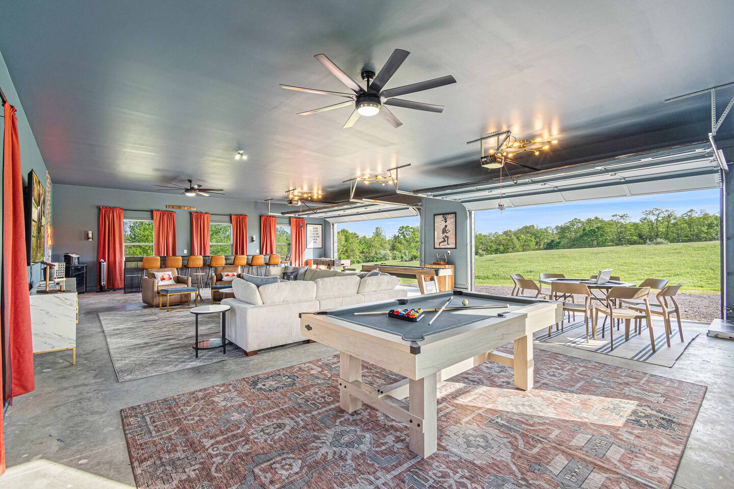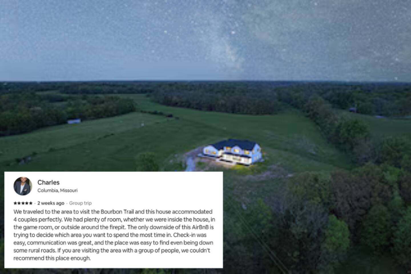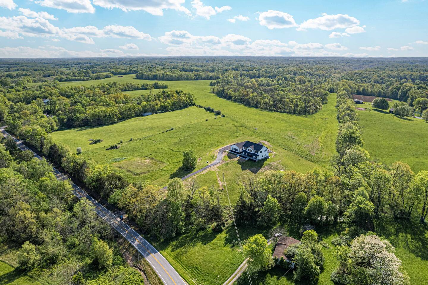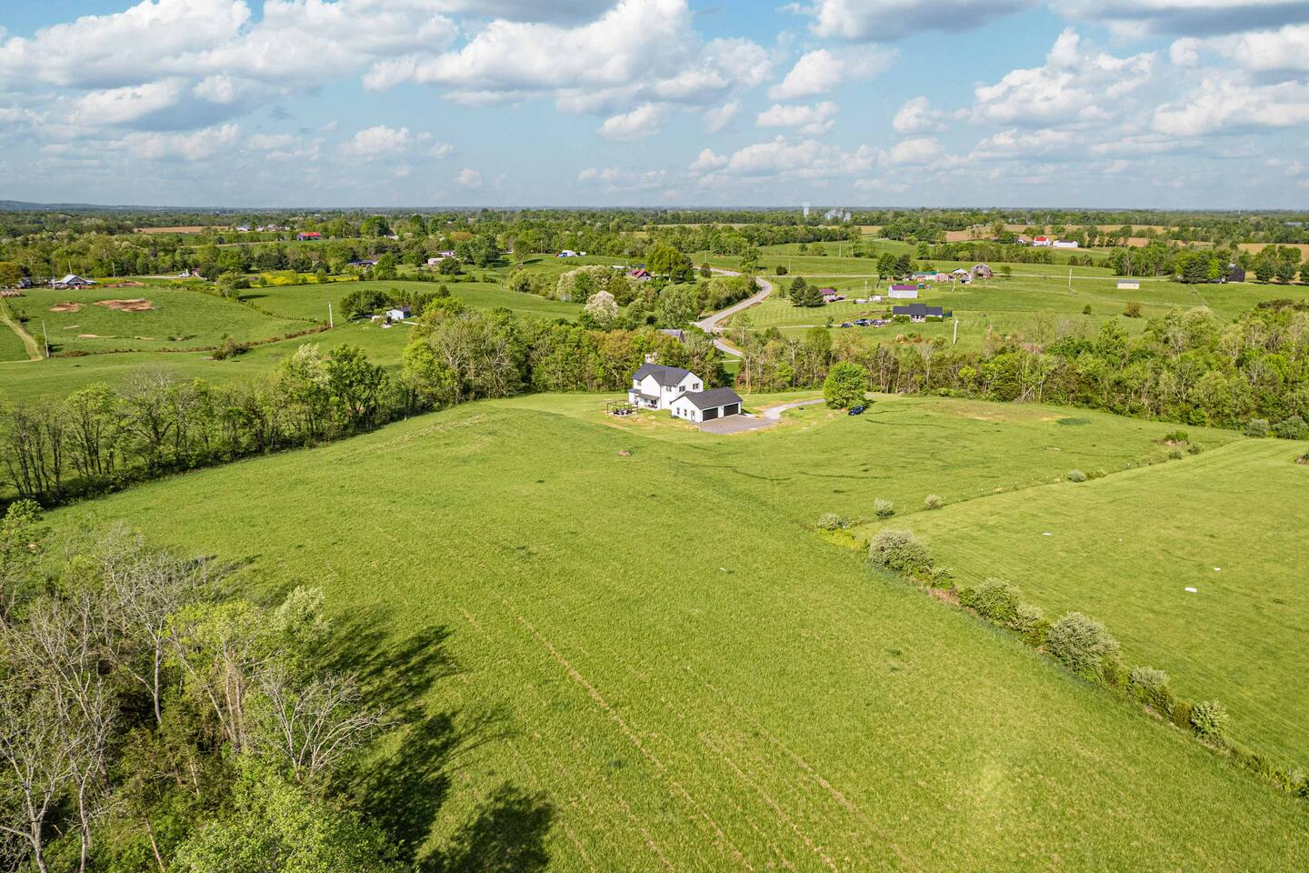 ★★★★★ "We thoroughly enjoyed the hot tub and spent evenings by the fire pit and in the well equipped game room!" ❊Massive Game Room ❊5 acres of seclusion ❊Large Bar, mini fridge, ice maker and all of the barware needed to mix up your favorite beverages! ❊Pool table, shuffleboard, foosball, poker table ❊Massive 85-inch smart TV surrounded by large sectional ❊2 65-inch Roku TVs in both main living room and upstairs loft ❊Covered 6-person Hot Tub ❊2 covered patios with seating areas ❊Large backyard fire pit overlooking the rolling hills ❊Horseshoe pit, corn hole and bocce ball. ❊Propane grill w/ utensils ❊Fully loaded kitchen with brand new stainless-steel appliances ❊Keurig, French Press, & tea kettle ❊Large 8-person dining table alongside 4-person island seating area ❊Full size washer/dryer This 4 Bedroom/2.5 bath can accommodate up to 12 people comfortably. Nestled amidst the picturesque landscape of semi-rural KY, our house is a tranquil haven away from the hustle and bustle of city life. Enjoy privacy and seclusion on 5 acres of rolling hills while being just minutes from some of Kentucky’s most famous distilleries along the Bourbon Trail, including Buffalo Trace, Bulleit and Jeptha Creed! Explore the charm of nearby towns with just a short drive to Frankfort, Shelbyville, and easy access to both Louisville and Lexington! This property is equipped with endless activities and amenities for you to enjoy with friends & family. Soak in the brand-new 6-person hot tub, or roast marshmallows in the massive backyard firepit beneath the string lights in full seclusion. Challenge your friends to endless games ranging from billiards, shuffleboard, foosball, poker, horseshoes, and corn hole. After a long day, kick back and enjoy a movie on the 85-inch flat screen TV within the massive game room. ✦Kitchen✦ Love coffee? We have you covered with a Keurig Duo, French Press, tea kettle, k-cups, ground coffee, creamers, and tea! Embrace your inner chef and prepare delicious meals in the fully loaded kitchen, featuring black leathered granite countertops, brand-new stainless-steel appliances and all essential cookware. ✦Sleeping Accommodations✦ ✦Primary Suite: This main level bedroom contains a King bed with a luxury memory foam mattress and high-quality linens to ensure a great night's sleep! Enjoy the massive walk-in closet, and a 50” Roku smart TV. The en-suite bath comes complete with a double vanity, and walk-in shower. For your convenience, we've taken care of your toiletry needs. Shampoo, conditioner, toilet paper, makeup towels and a hairdryer are provided. ✦Upstairs Bedrooms 2 & 3 each offer a comfortable, plush king-sized bed, luxury linens, a smart Roku TV, and a walk-in closet for convenience. ✦Bedroom 4: This spacious bedroom features two Queen beds each with a comfortable memory foam mattress and luxury linens! ✦Upstairs loft with Queen Size sleeper sofa: Unwind in a Kentucky Farmhouse themed loft, featuring hanging chairs, stylish wallpaper, 65-inch Roku TV and card table for entertainment. Extra Sleeping Space: The queen sleeper sofa provides additional sleeping accommodations for guests. ✦Upstairs Bathroom: The upstairs hallway bathroom features a large double vanity, shower/tub combo, shampoo, conditioner, makeup towels and a hairdryer are provided for your use. Escape to our Modern Farmhouse Retreat and experience the best of Kentucky's bourbon country in style and comfort. Book your stay now and make unforgettable memories in this enchanting destination! ✦Nearby Distilleries✦ ∗Bulleit Distilling Co ∗Three Boys Farm Distillery *Whiskey Thief Distilling Co *The Barrel Room *The Last Stope Brewing ∗Buffalo Trace Distillery: One of the most famous distilleries in Kentucky! *Glenn's Creek ∗Jeptha Creed Distillery: tours and tastings of their craft spirits, including vodka, moonshine, and bourbon. ∗Castle & Key Distillery: Castle & Key Distillery is housed in a historic property with beautifully restored gardens. Visitors can take guided tours of the distillery and enjoy tastings of their premium spirits. *Wild Turkey *Four Roses *Lawrenceburg Bourbon Co ✦Wineries✦ ∗Talon Winery & Vineyards: Offers wine tastings and tours of their picturesque vineyard. Visitors can sample a variety of wines and relax in the scenic outdoor setting. ∗Lovers Leap Winery ∗Prodigy Vineyards & Winery ∗Equus Run Vineyards *Rising Sons Winery ✦Other local attractions✦ ∗Keeneland ∗Churchill Downs (Derby) *The Kentucky Castle *The Kentucky River Boat Tours *Claudia Sanders Dinner House *Guist Creek and Marina *Shelby County Park and Recreation ✦Grocery✦ ∗Both Walmart Supercenter and Kroger are just a short drive away to pick up everything you'll need during your stay!