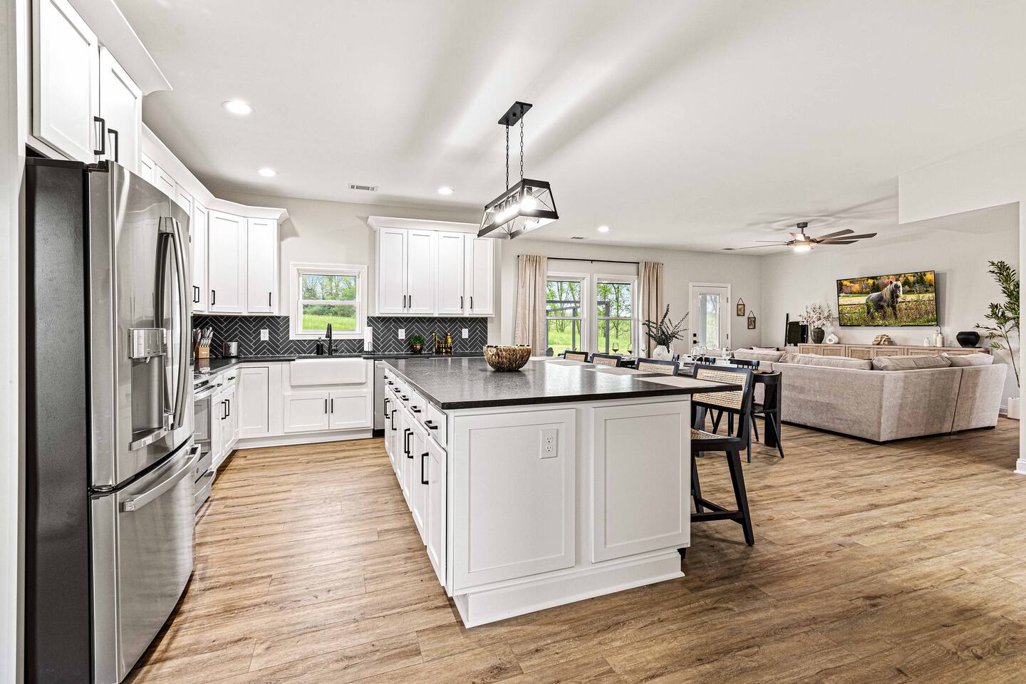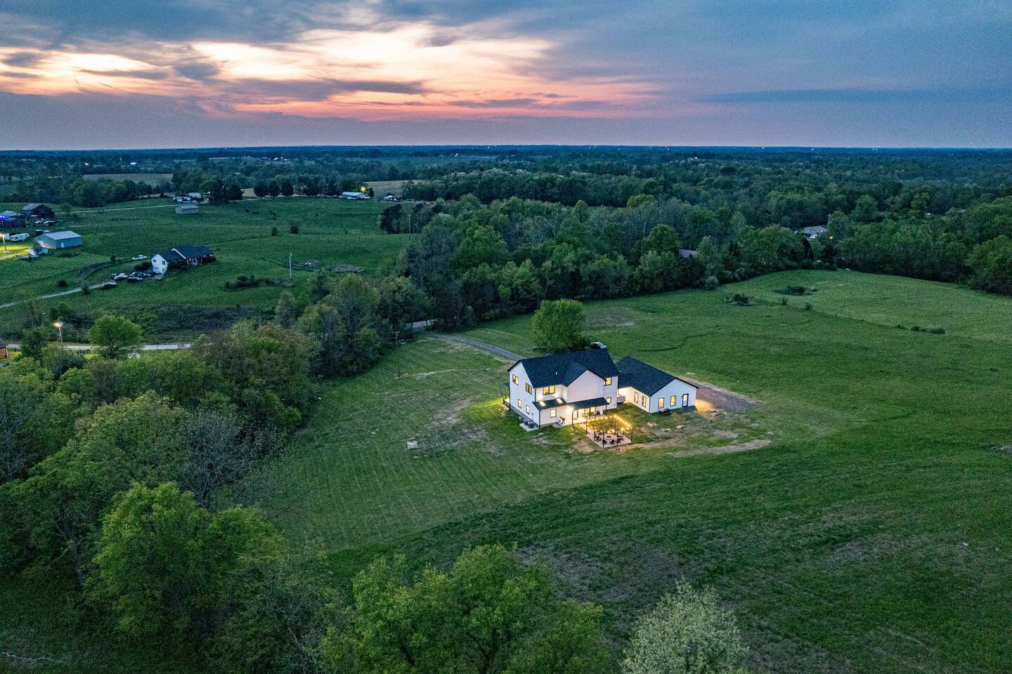 Brand-New Modern Farmhouse! Over 3,300 sqft on 5 acres. 4 private bedrooms, hot tub, massive firepit, fully loaded kitchen, seclusion, endless amenities and games throughout!! Just minutes to Kentucky's most famous distilleries! ★★★★★ "This place was pristine! Easy instructions, amazing amenities, so much to do in the house!" Send us a message with any questions!