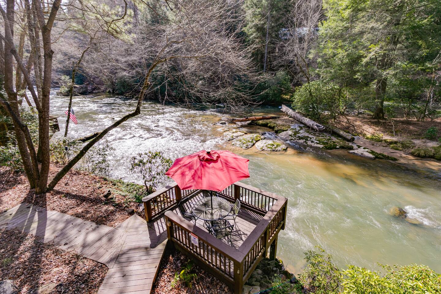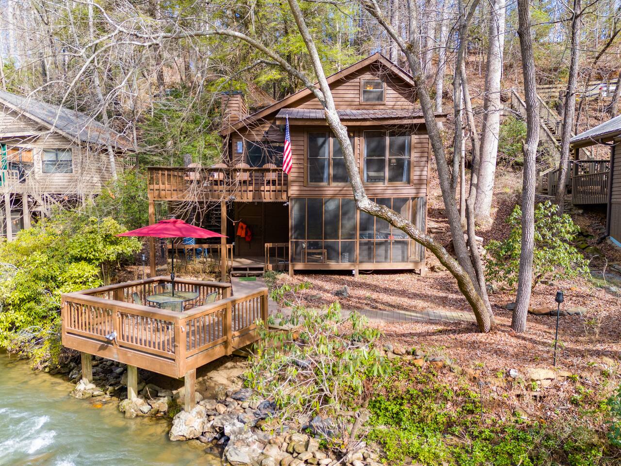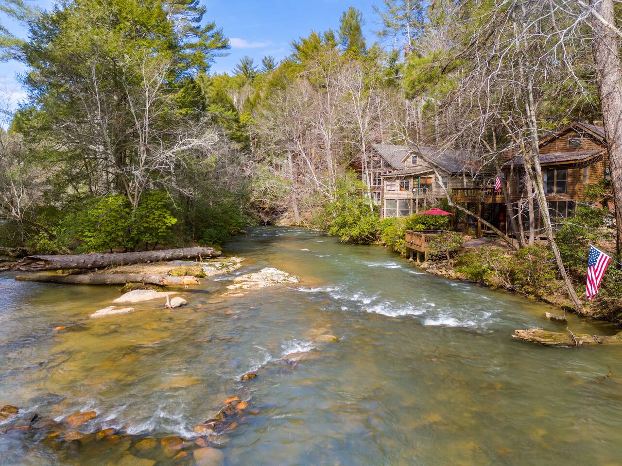 โ There is street parking for only 1 car โ You must walk down approximately **40 steps** to enter the front door of this cabin โ This cabin is water front. There are NO barriers between the property and the water. Children must be accompanied by an adult at all times. Enter the river at your own risk. *Travel Insurance* We recommend that you get travel insurance through a company of your choice for in the event of unforeseen weather and circumstances. *Asian Lady beetles/stink bugs are very prevalent in the North GA/Tennessee mountains in the colder months and they do make their way inside the cabins. Despite vacuuming/cleaning and routine pest control you may see them inside. Please keep in mind they are harmless and we appreciate your understanding.