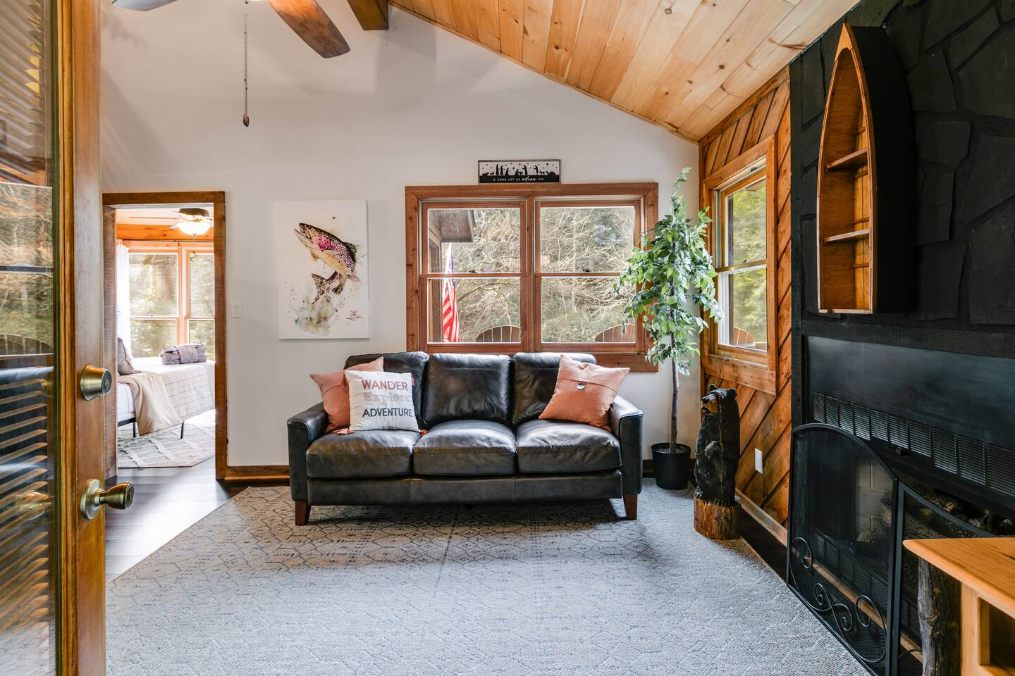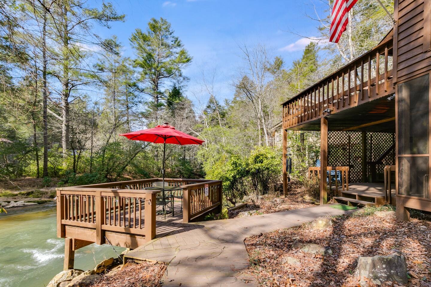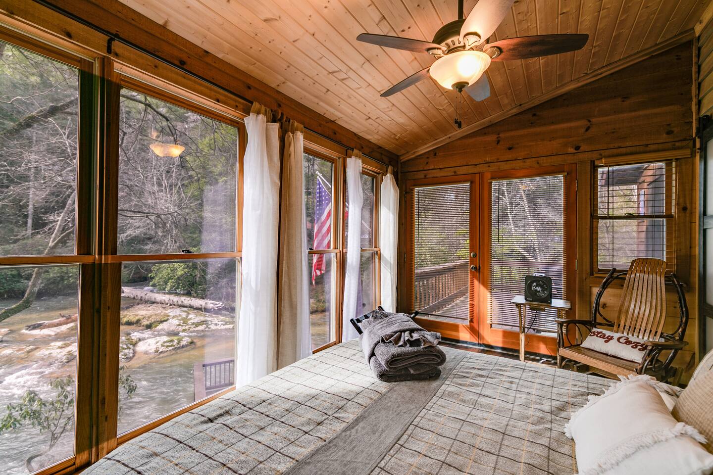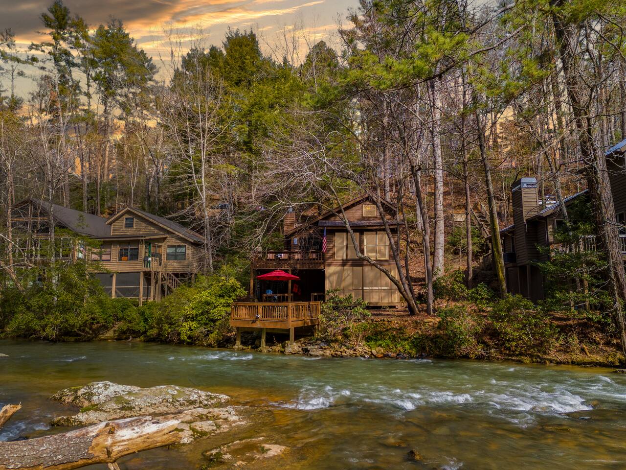 โ There is street parking for only 1 car โ You must walk down approximately **40 steps** to enter the front door of this cabin โ This cabin is water front. There are NO barriers between the property and the water. Children must be accompanied by an adult at all times. Enter the river at your own risk. *Travel Insurance* We recommend that you get travel insurance through a company of your choice for in the event of unforeseen weather and circumstances. *Asian Lady beetles/stink bugs are very prevalent in the North GA/Tennessee mountains in the colder months and they do make their way inside the cabins. Despite vacuuming/cleaning and routine pest control you may see them inside. Please keep in mind they are harmless and we appreciate your understanding.