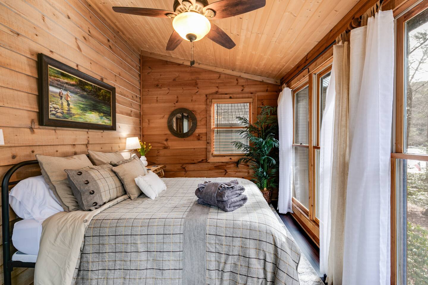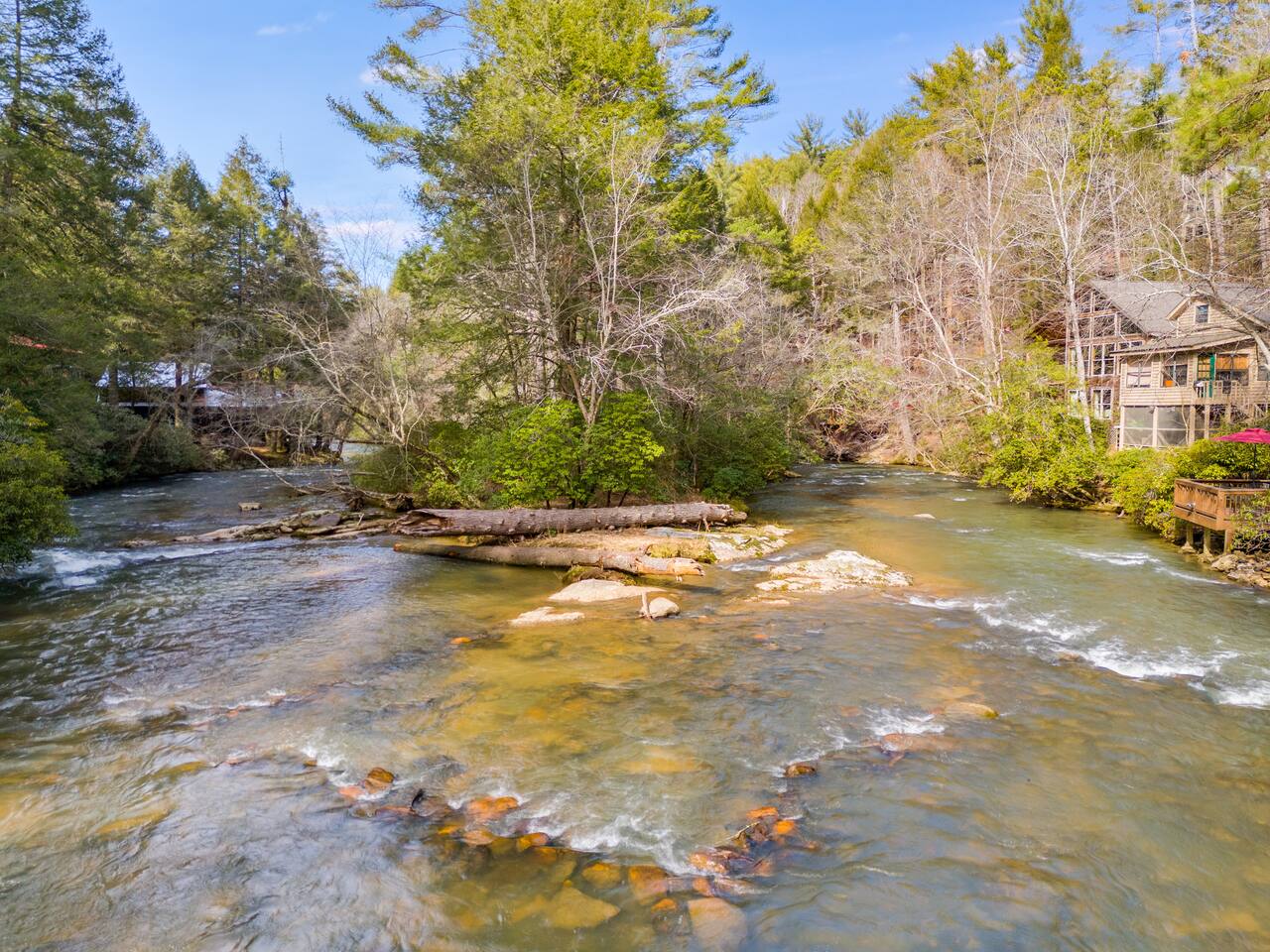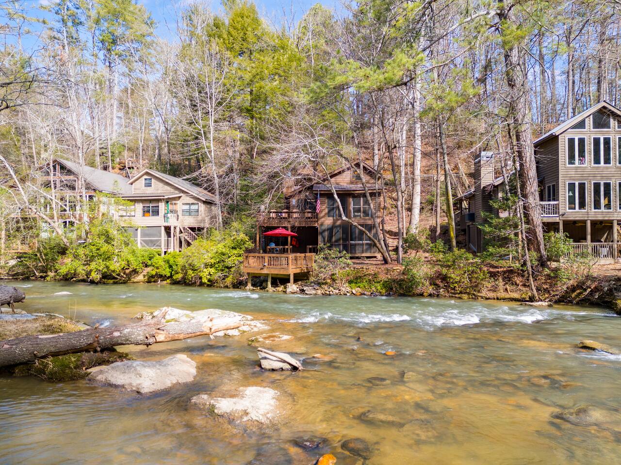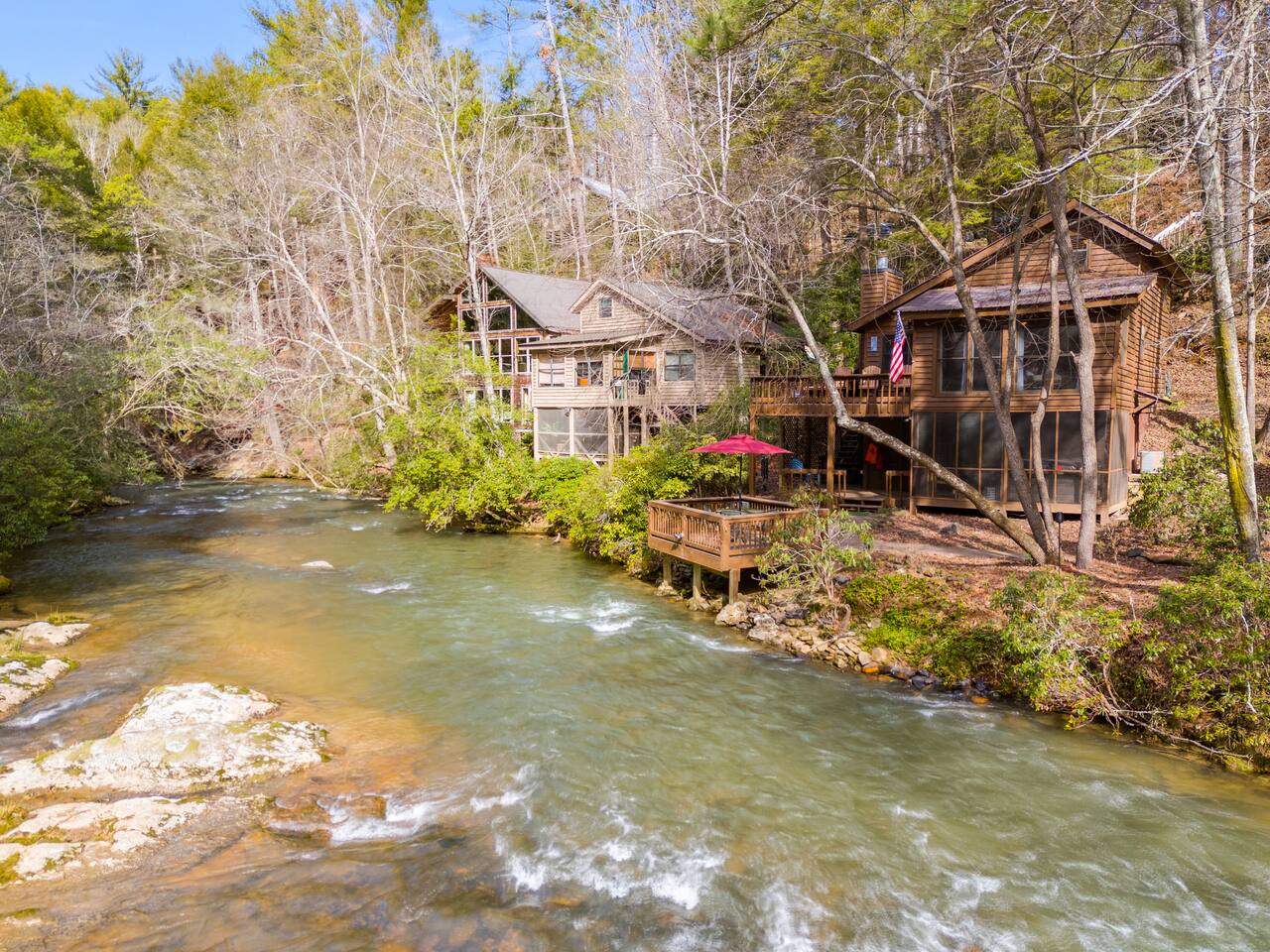 Riverfront Cabin Highlights: ๐ Stunning riverfront views with direct access to the water ๐ Just minutes from Downtown Ellijay โ shops, dining, and charm close by ๐ Primary bedroom with scenic river views ๐ฅ Cozy main-level living room featuring a gas fireplace ๐บ Upper-level living room with a 55" Smart TV for streaming ๐ท Surrounded by award-winning vineyards & ๐ apple orchards โ perfect for day trips ๐ฝ๏ธ Grill and dine riverside on the spacious back deck