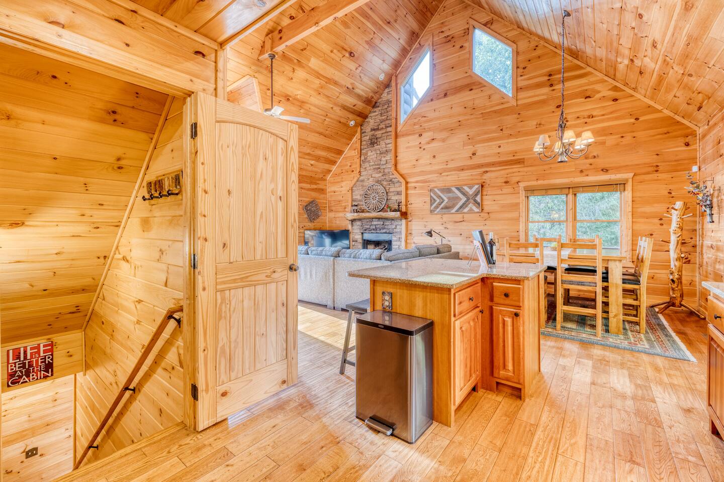 Accessing this mountain getaway is a breeze! Just a quick two miles from the Appalachian Highway (515/76) via a fully-paved scenic route with easy-to-handle elevation. You can be confident that whether you’re driving a minivan or a sports car, you’ll arrive safely and quickly to the all-paved driveway with plenty of parking.