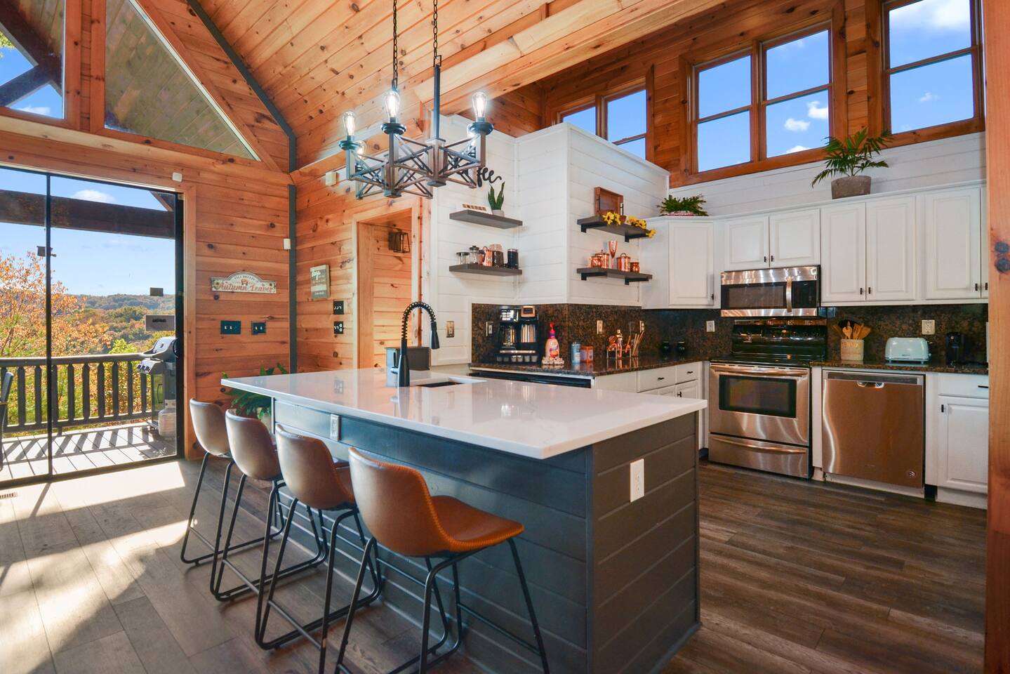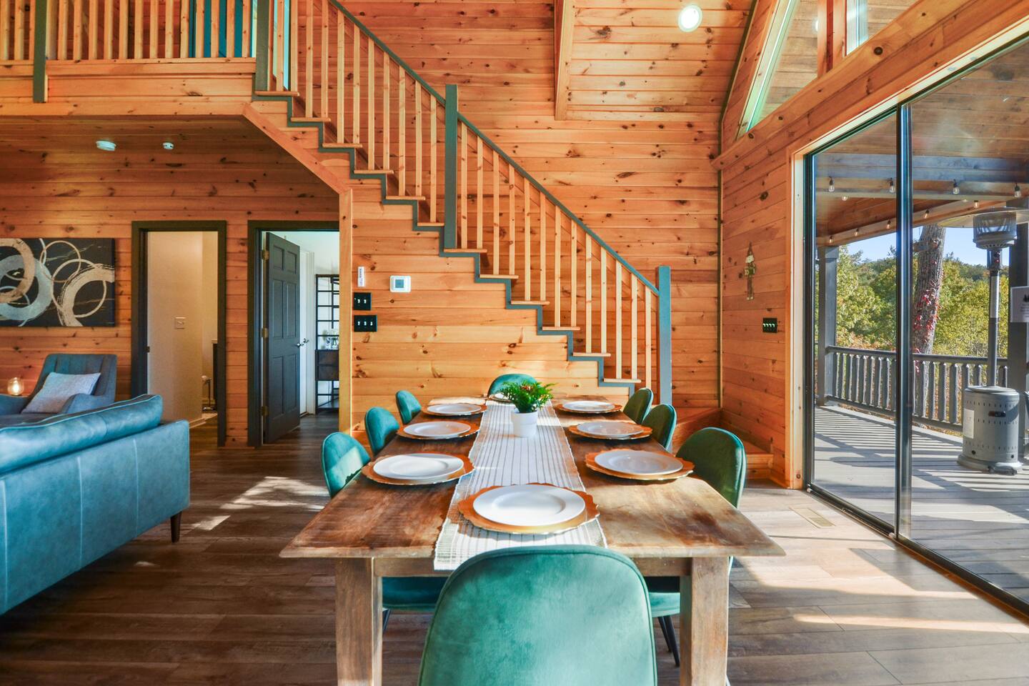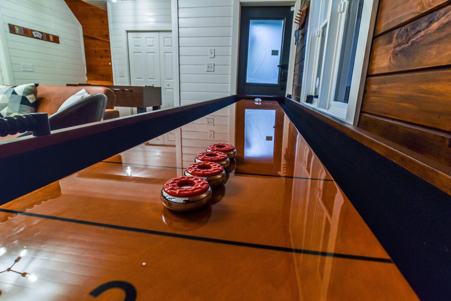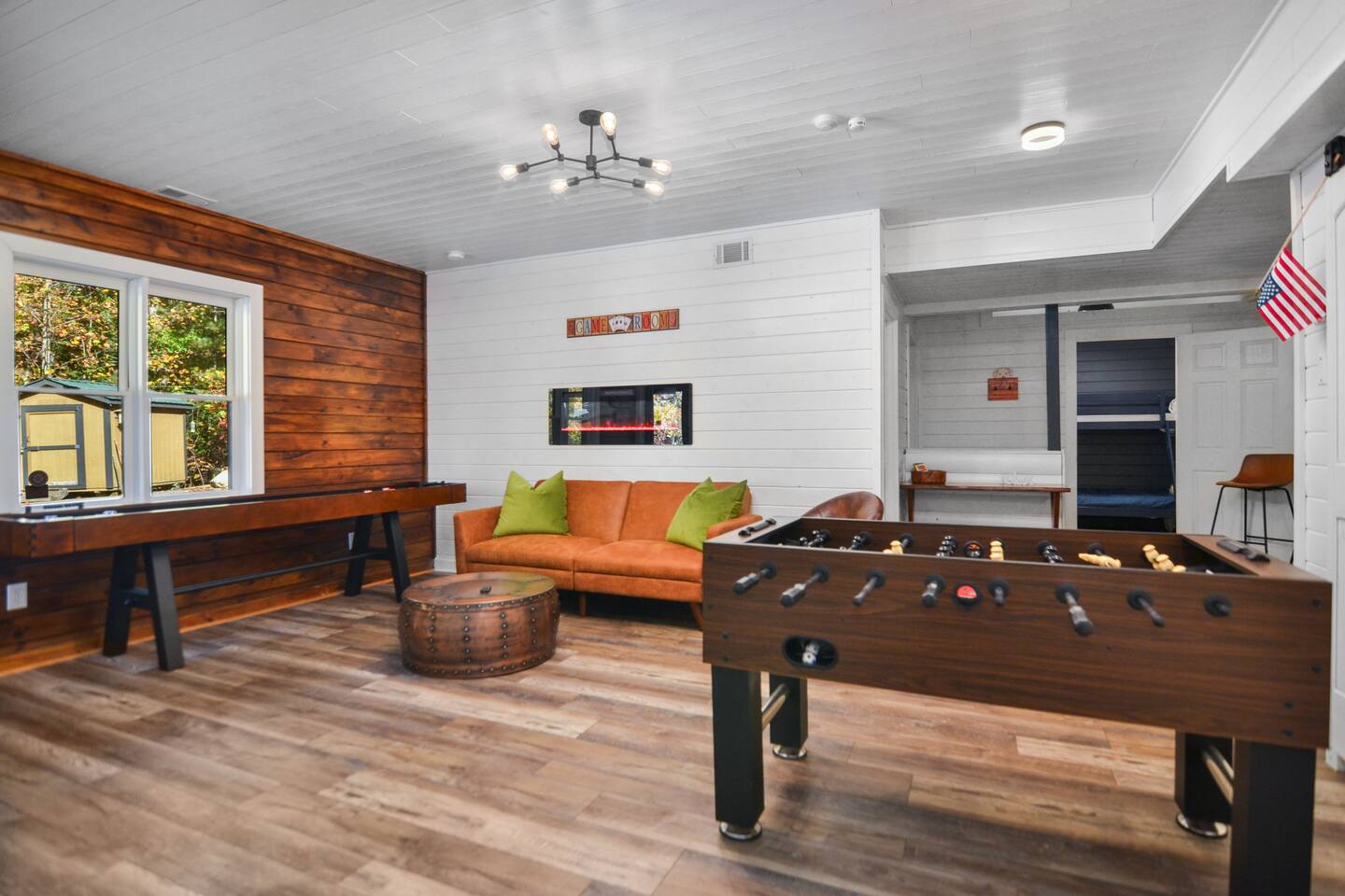 ★★★★★ "...Plenty of space, nice bedrooms, great kitchen, fun game room, and an amazing large deck with unforgettable views." •STUNNING VIEWS of the Cohutta Mountains •Luxurious Cabin •Massive Deck with electric fireplace & seating areas •Brand new Hot-Tub! •Weber grill •Fast 1GB Wi-Fi w/ YouTube streaming provided •Game room w/ shuffleboard, foosball & board games •Fully stocked kitchen •3 King beds. 1 sofa bed, 1 bunk bed twin over full